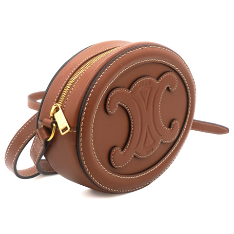| This chic shoulder bag is crafted of calfskin in a tan. The bag features an adjustable leather shoulder strap with gold hardware and a top zipper. The handbag opens to a tan leather interior. |