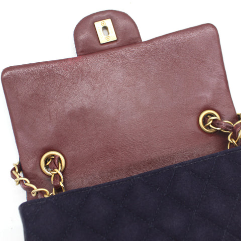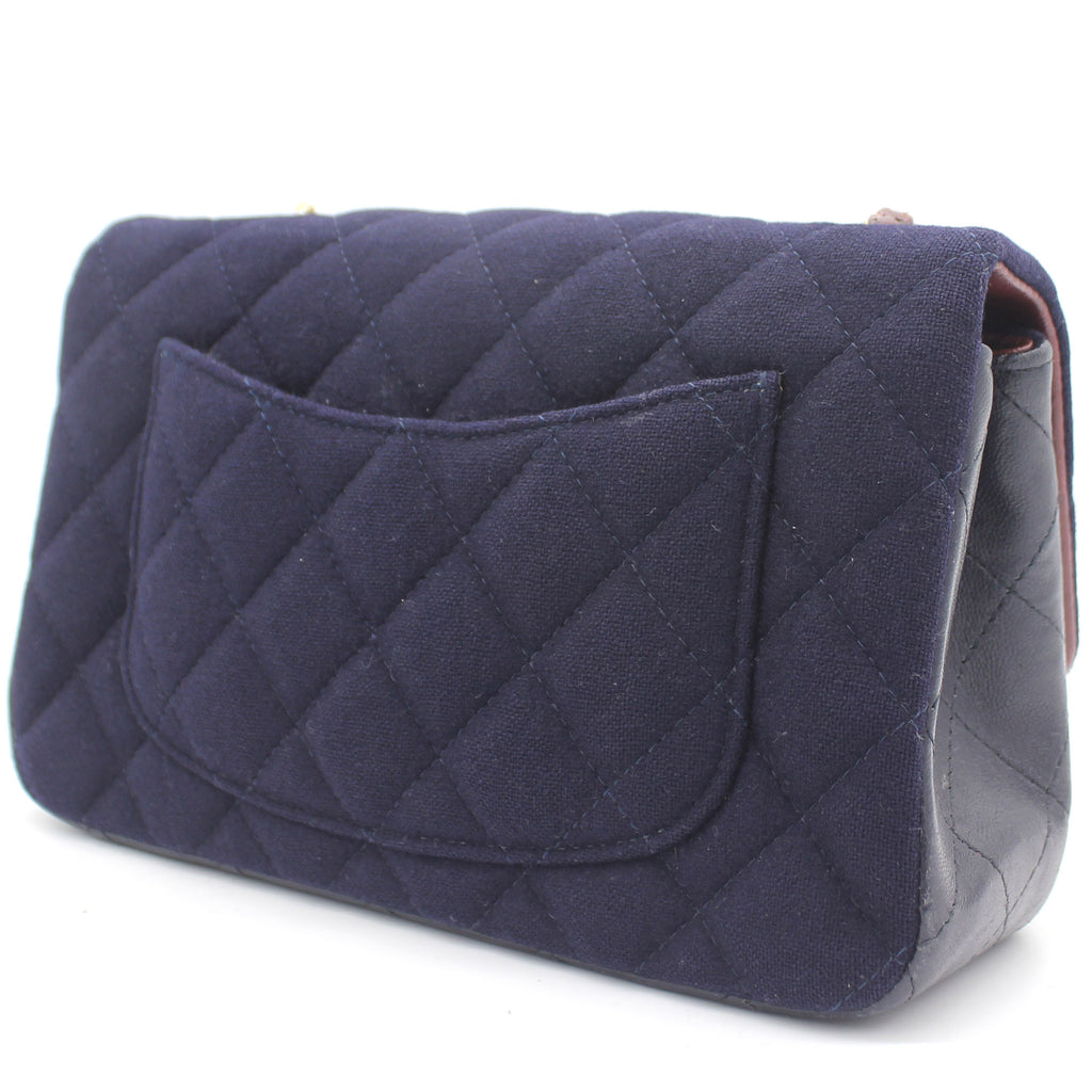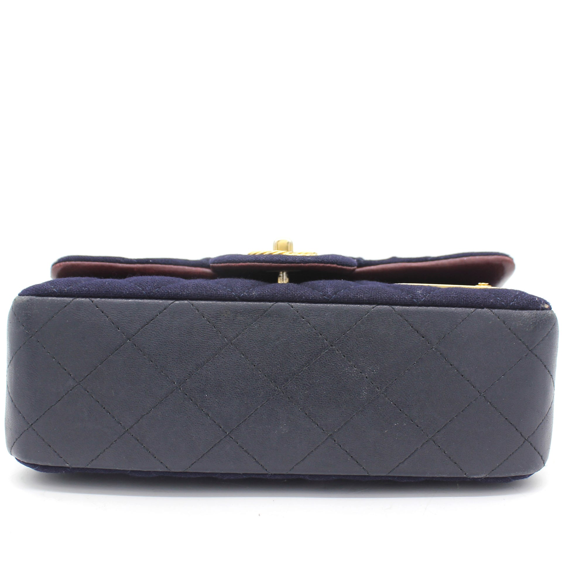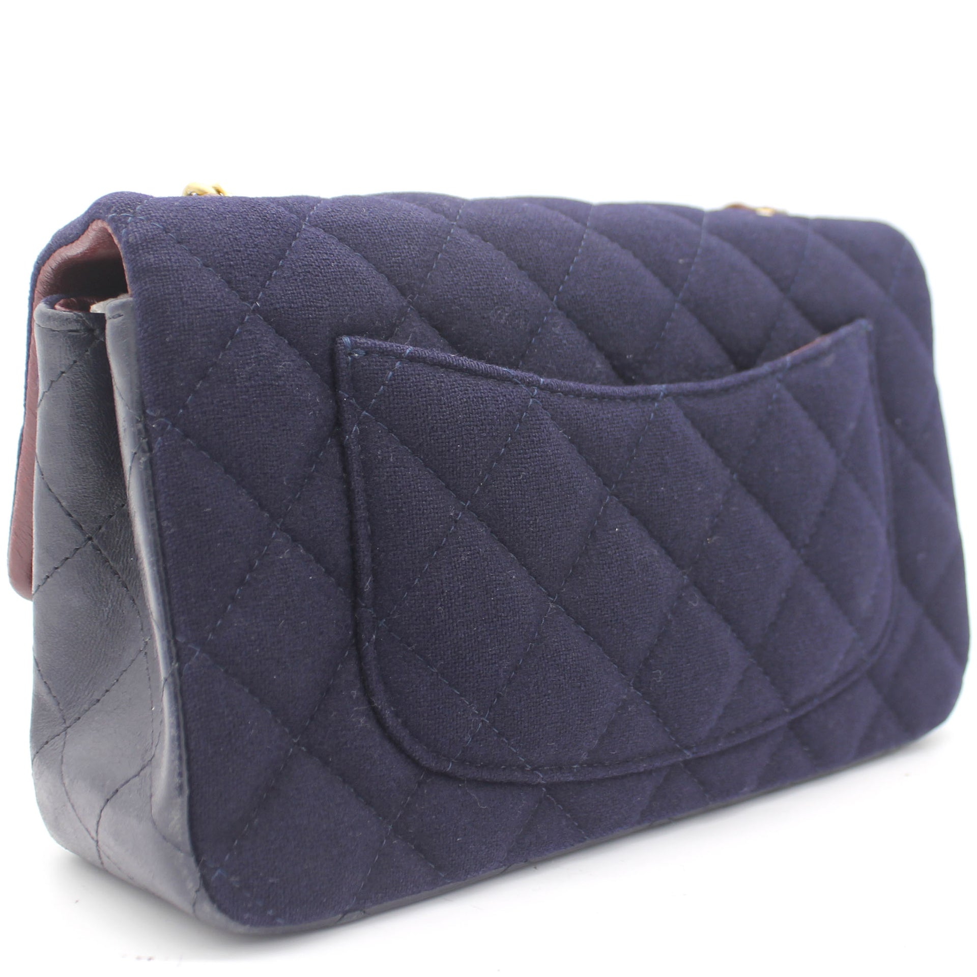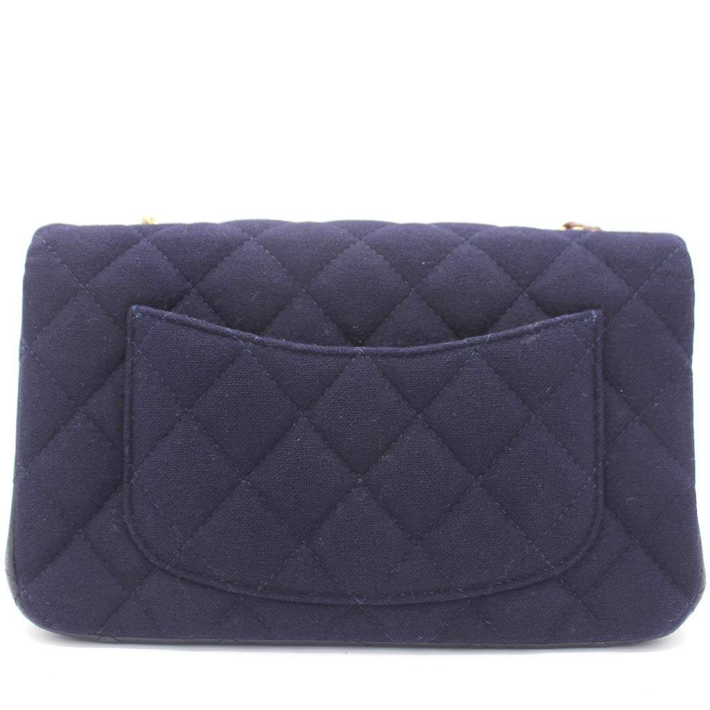 | This chic bag features quilted felt fabric in navy blue. The unique feature of this bag are the nautical charm embellishments. The bag features a long chain red leather and aged gold shoulder strap that can be worn cross body. The flap opens with a detailed aged gold CC Chanel turn lock to a red leather interior with a zipper and patch pocket. |