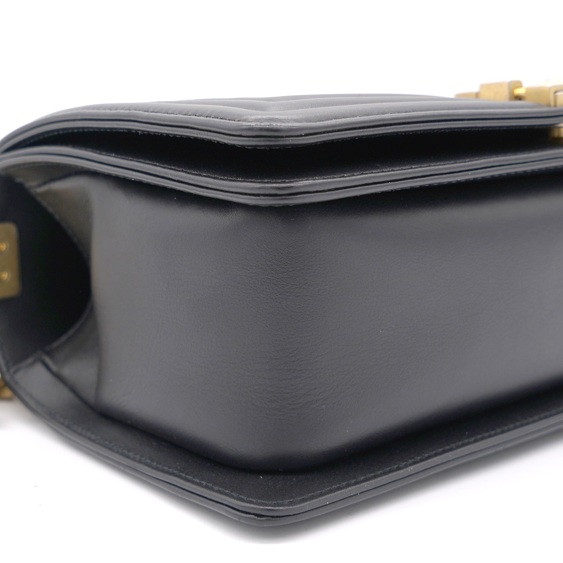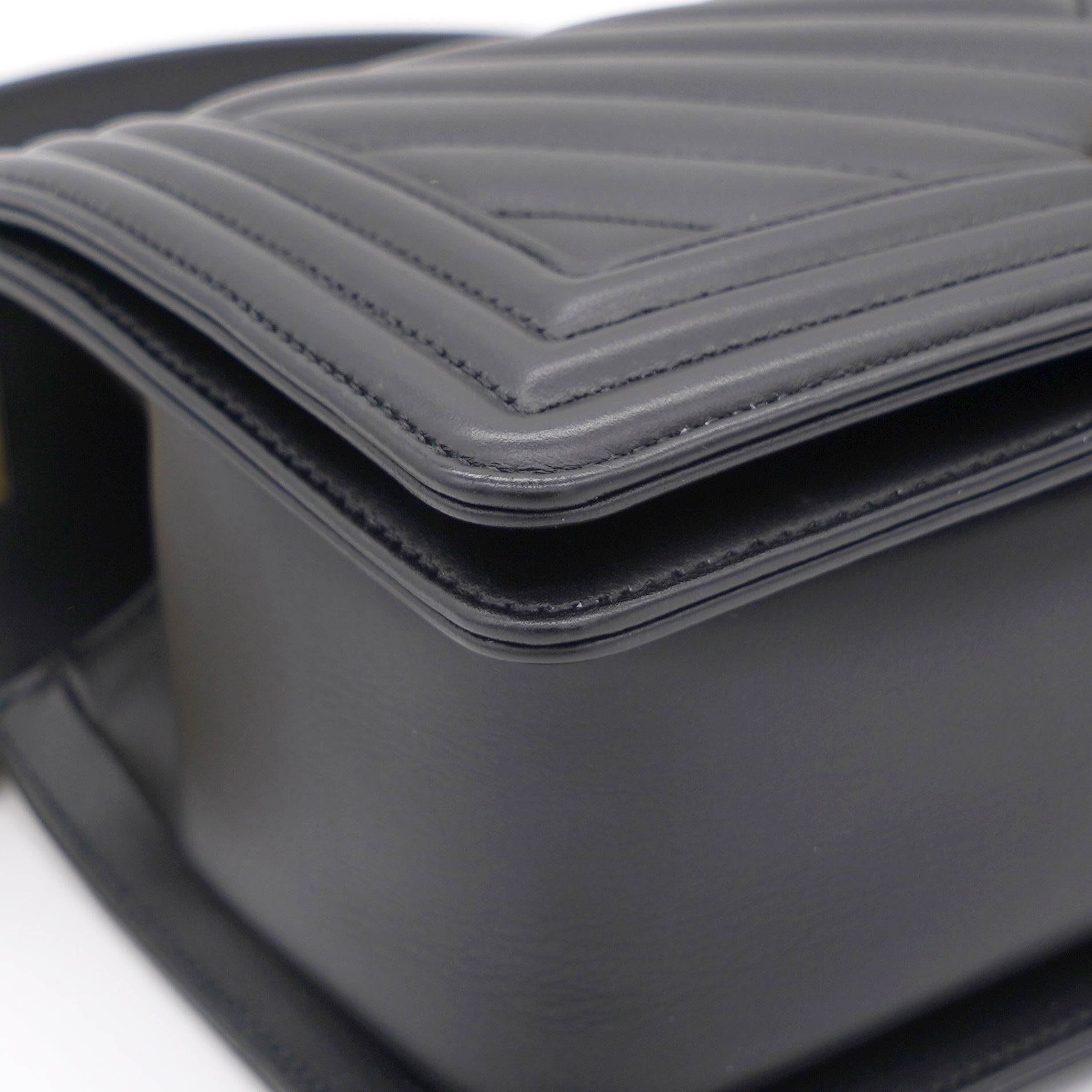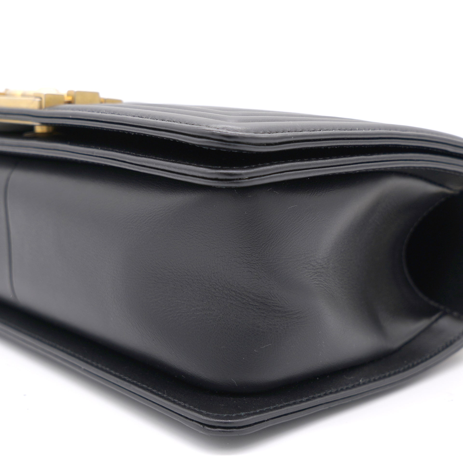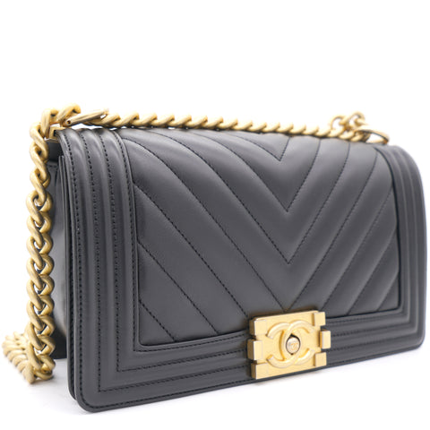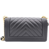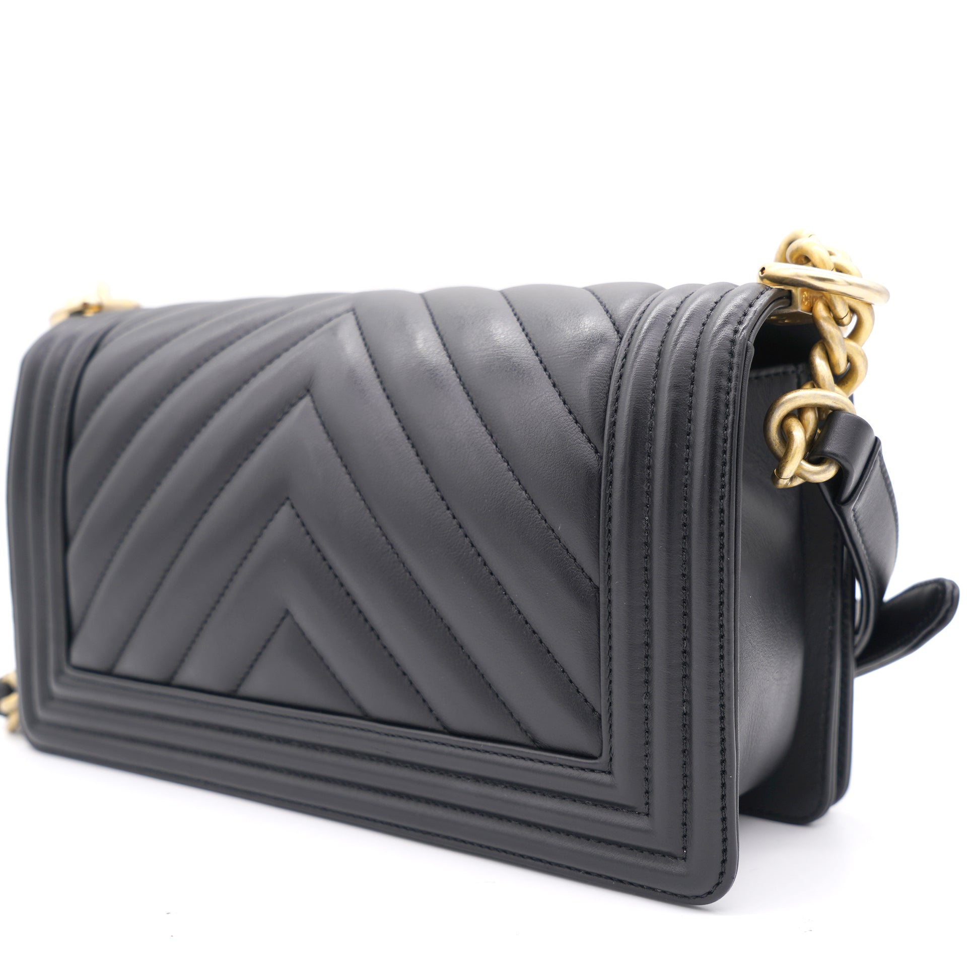 Every Chanel creation deserves to be etched with honour in the history of fashion as they carry irreplaceable style. Like this stunner of a Boy Flap that has been exquisitely crafted from chevron leather. It does not only bring a black shade but also their signature label on the fabric interior and the iconic CC push lock on the flap. The piece has gold-tone hardware, and a lovely chain link just so you can easily parade it. This flap bag, with its structured silhouette and classy style, is eyed by women worldwide. Cease the wait and make this luxurious bag yours today with pride.
