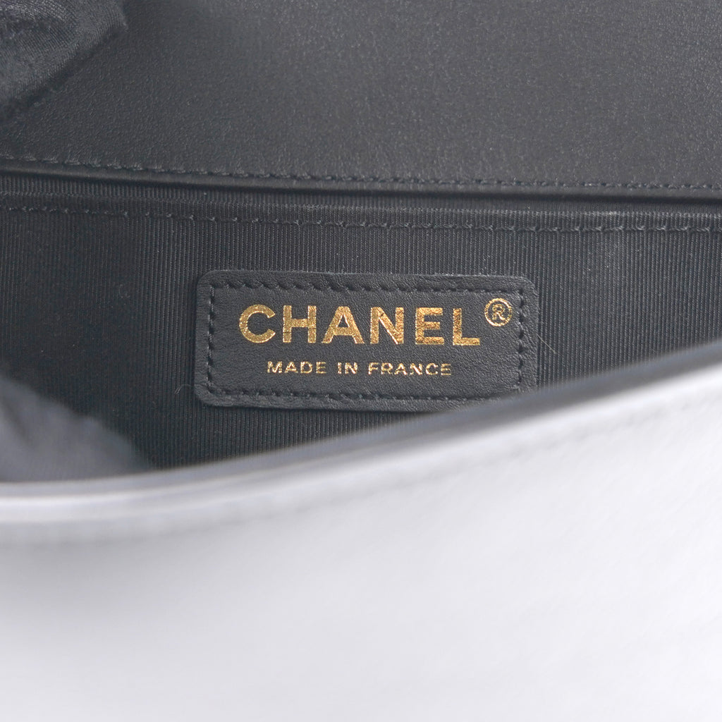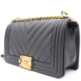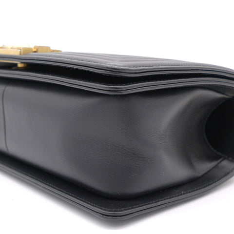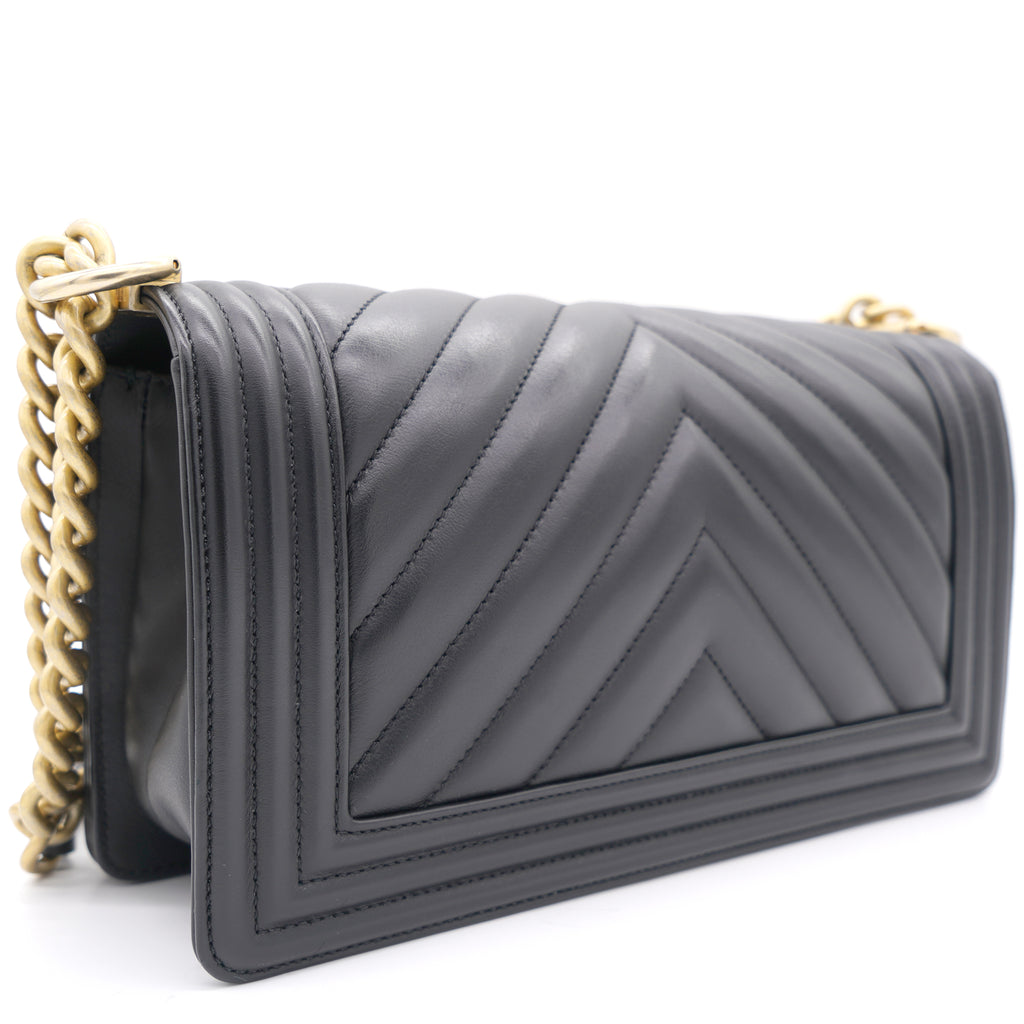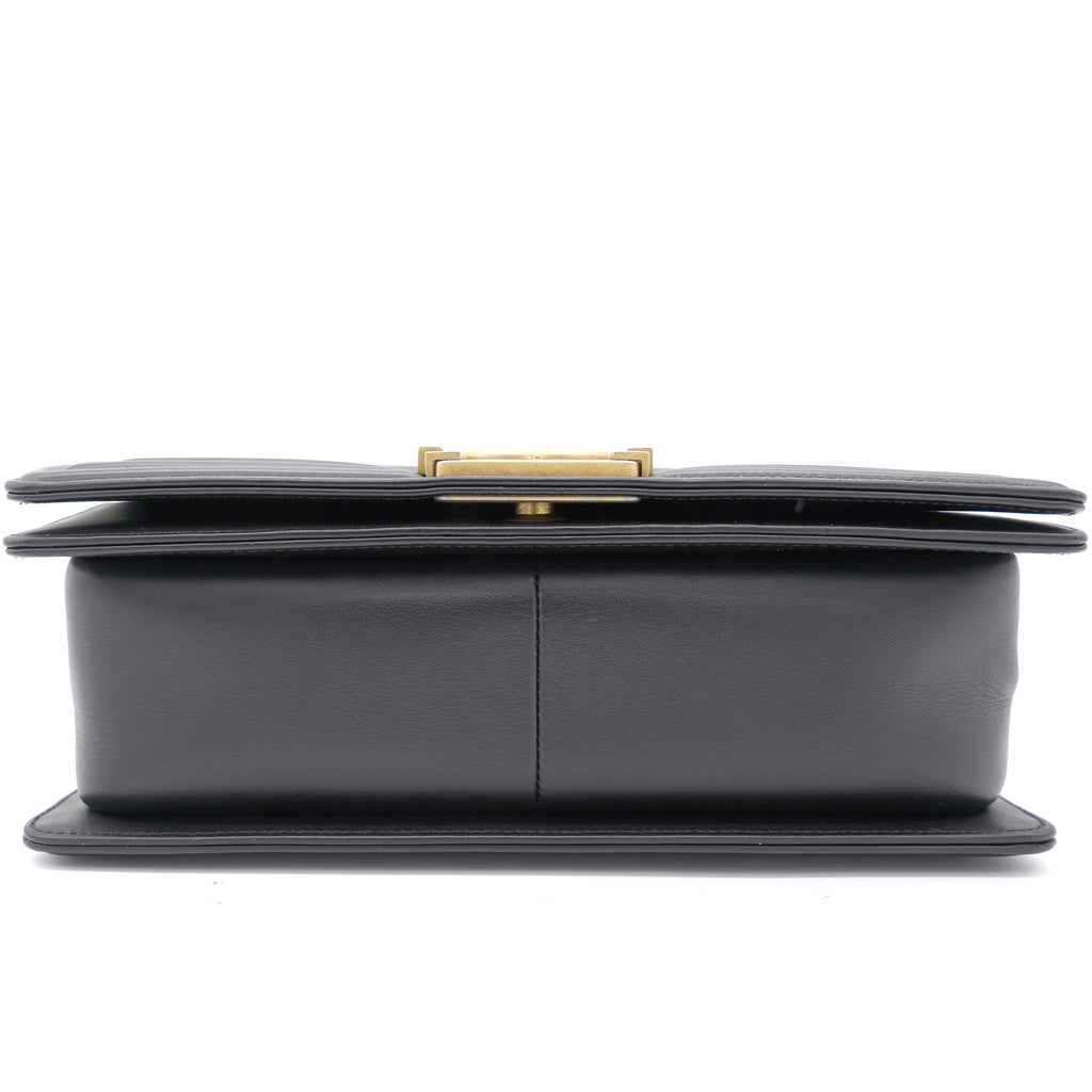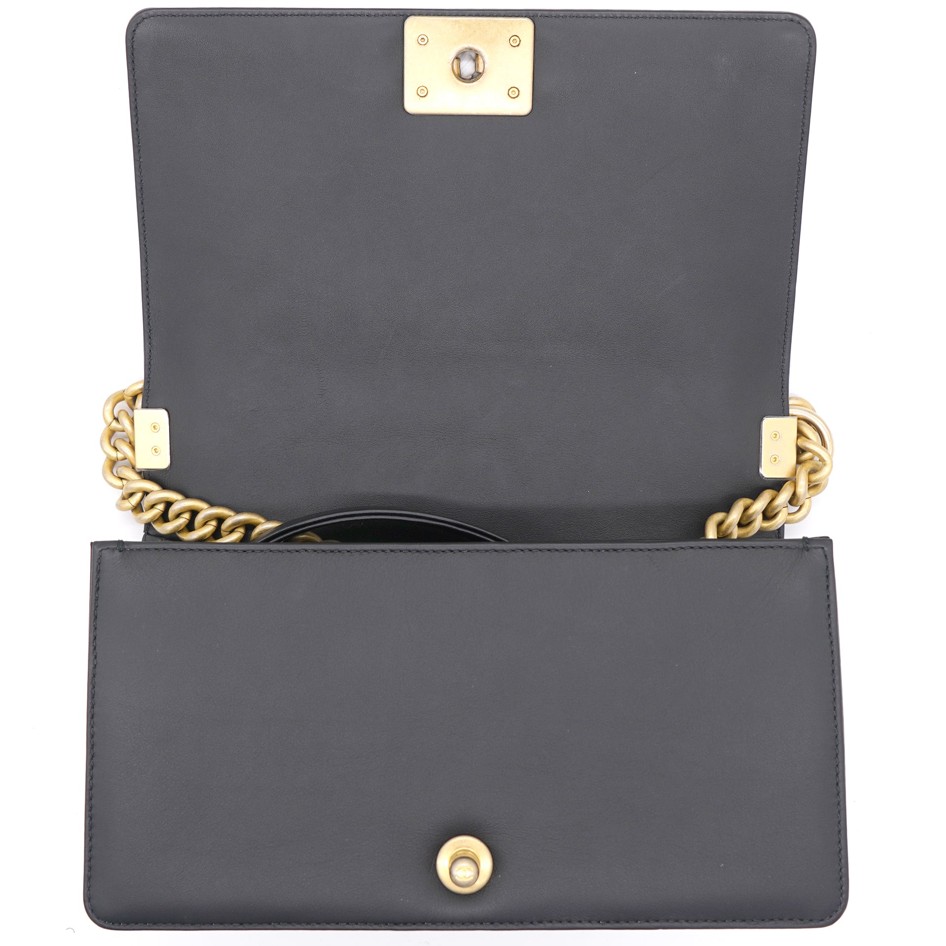 Every Chanel creation deserves to be etched with honour in the history of fashion as they carry irreplaceable style. Like this stunner of a Boy Flap that has been exquisitely crafted from chevron leather. It does not only bring a black shade but also their signature label on the fabric interior and the iconic CC push lock on the flap. The piece has gold-tone hardware, and a lovely chain link just so you can easily parade it. This flap bag, with its structured silhouette and classy style, is eyed by women worldwide. Cease the wait and make this luxurious bag yours today with pride.