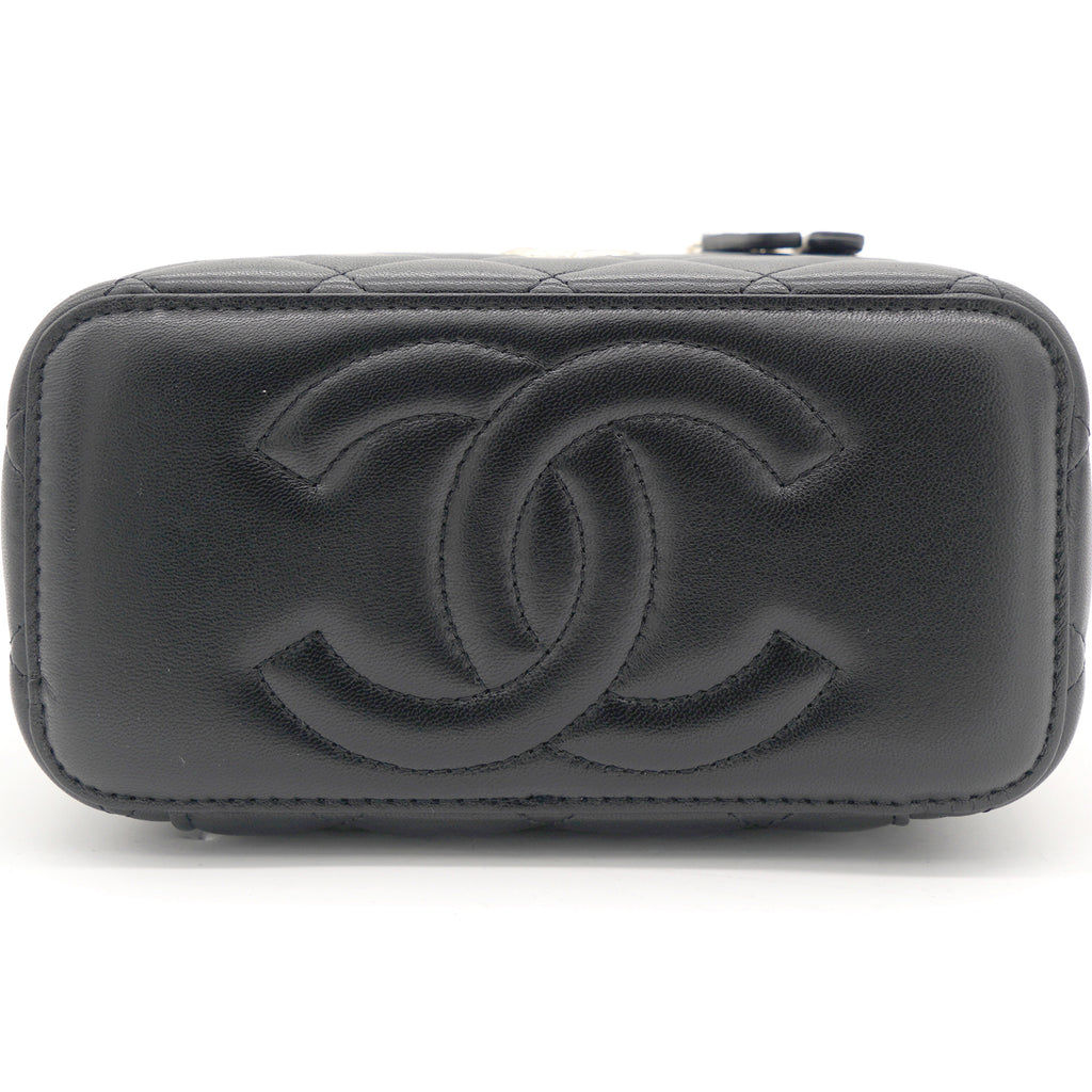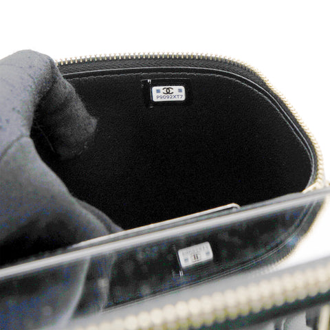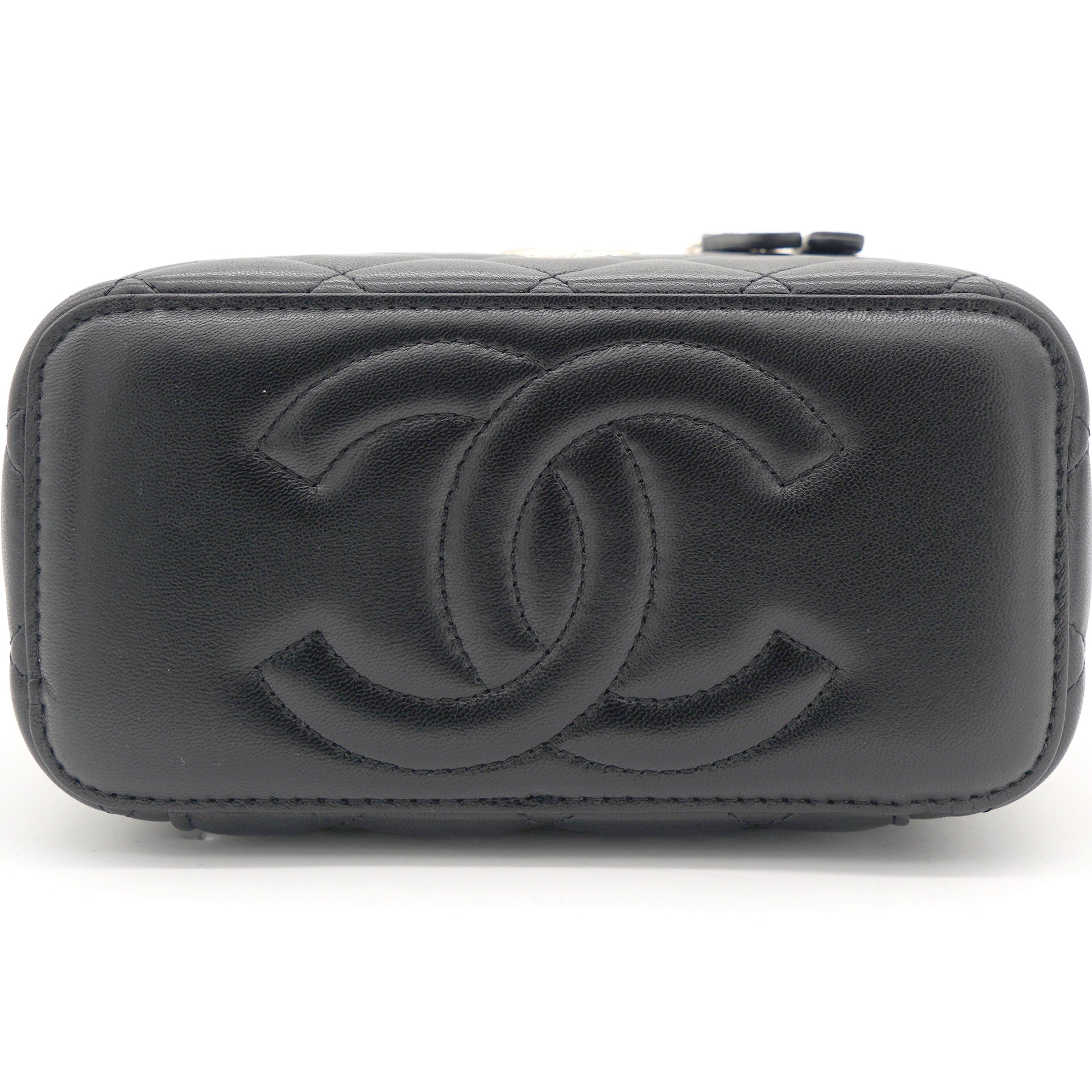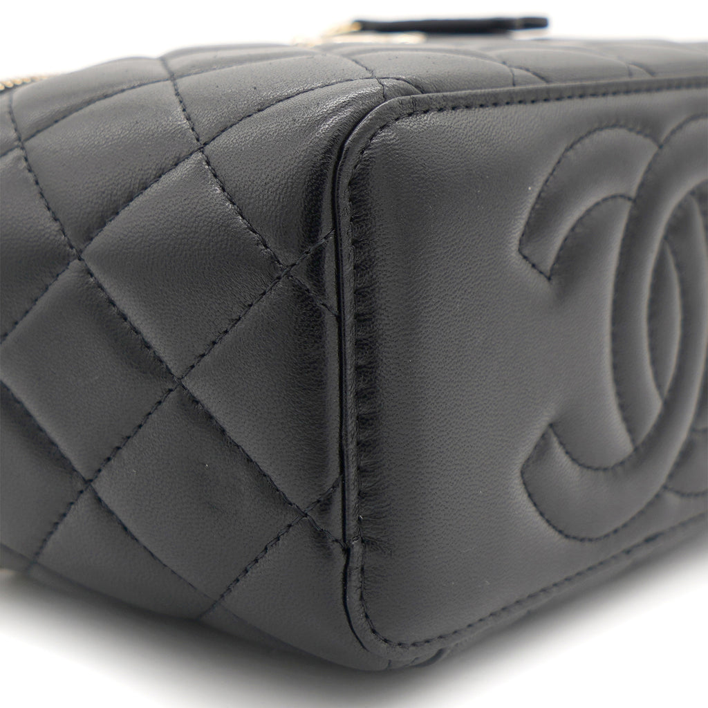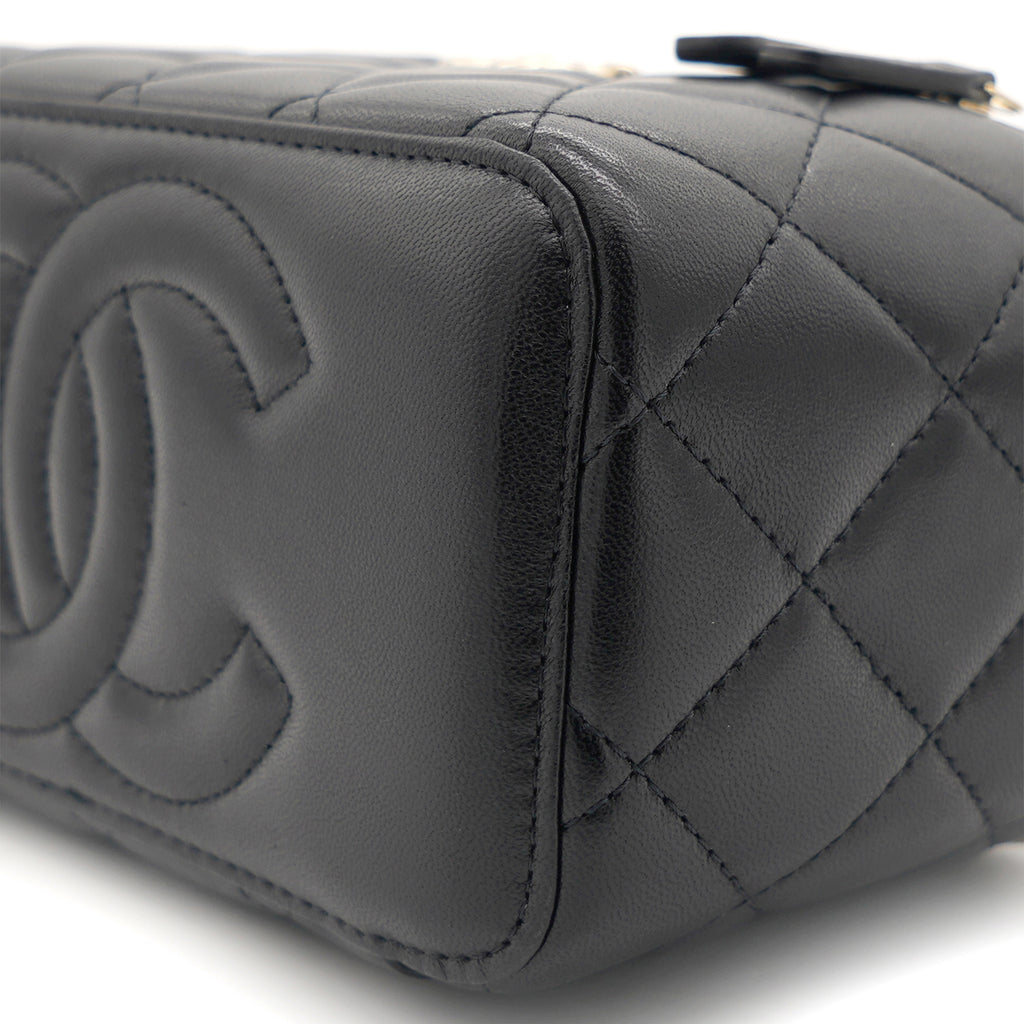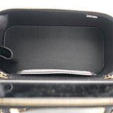 | This stylish crossbody is crafted of luxurious lambskin leather in black. The bag features a leather top handle, leather threaded gold chain-link shoulder strap, and gold hardware. The handbag features a 3/4 wrap-around zipper that opens to a black fabric interior. |