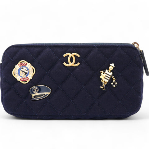 Navy Marine Cotton Phone Coco Mark Chain Shoulder Bag
