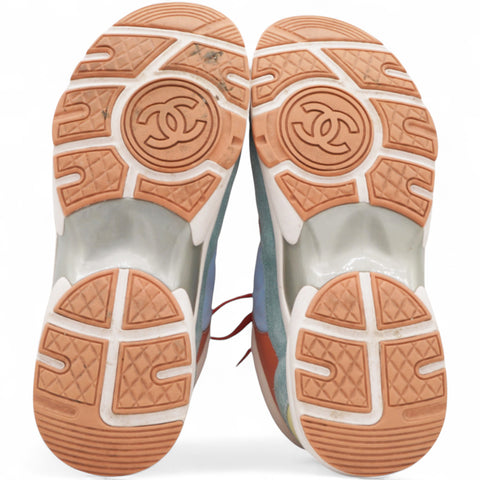 Nylon Lambskin Suede Leather CC Sneakers Coral Light Blue White Size37