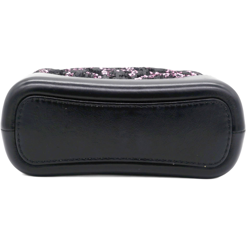 | This chic shoulder bag is consist of black and pink sequins with a sturdy shiny black base.The crossbody bag features thin gold tone, silver tone and ruthenium chain link leather threaded shoulder straps with a shoulder pad.The top zipper opens to a spacious black fabric interior with zipper and patch pockets. |