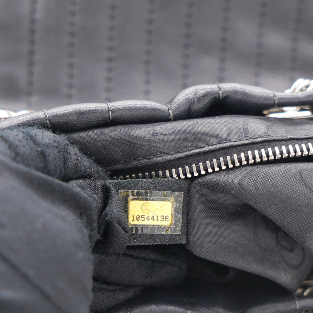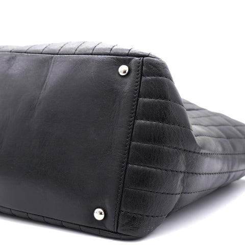 | A Chanel Black Vertical Quilted Mademoiselle Tote. This Chanel Tote pairing elements like vertical quilting in contrast stitching with silver-toned hardware and a chain-link strap. Designed for the contemporary woman, this black calfskin leather tote is plush and stylish with plenty of storage within. A fantastic everyday bag that exudes the charisma of Chanel |