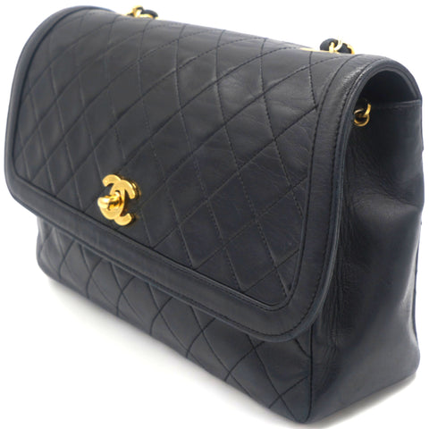 Vintage Lambskin Quilted Medium Single Flap Shoulder Bag Black