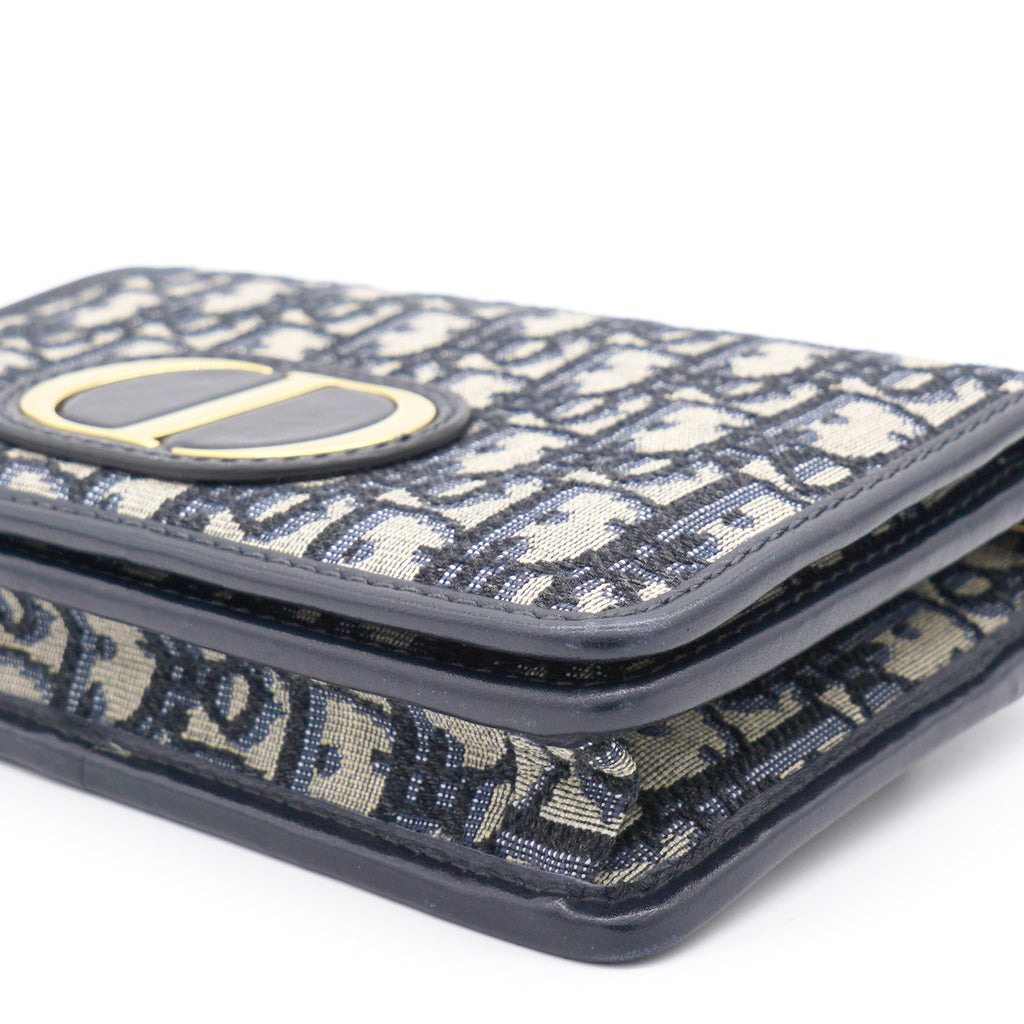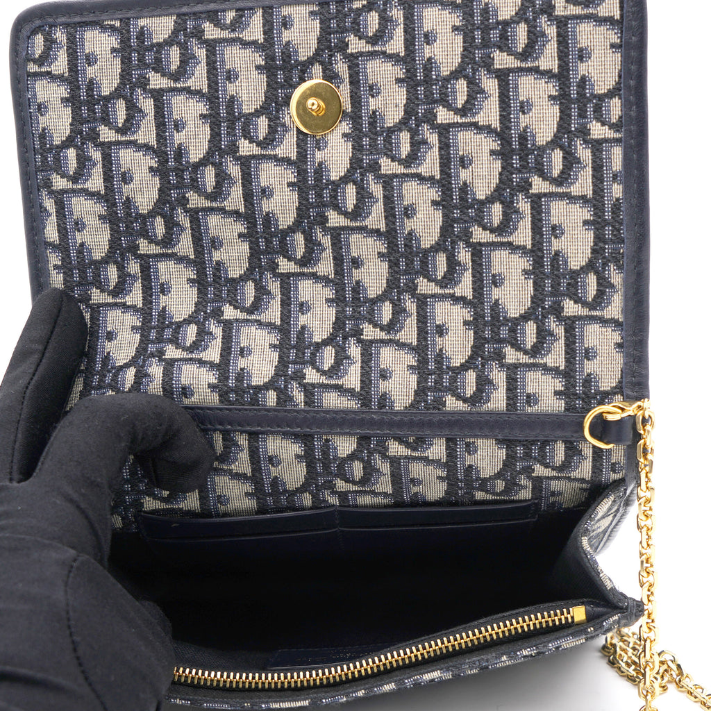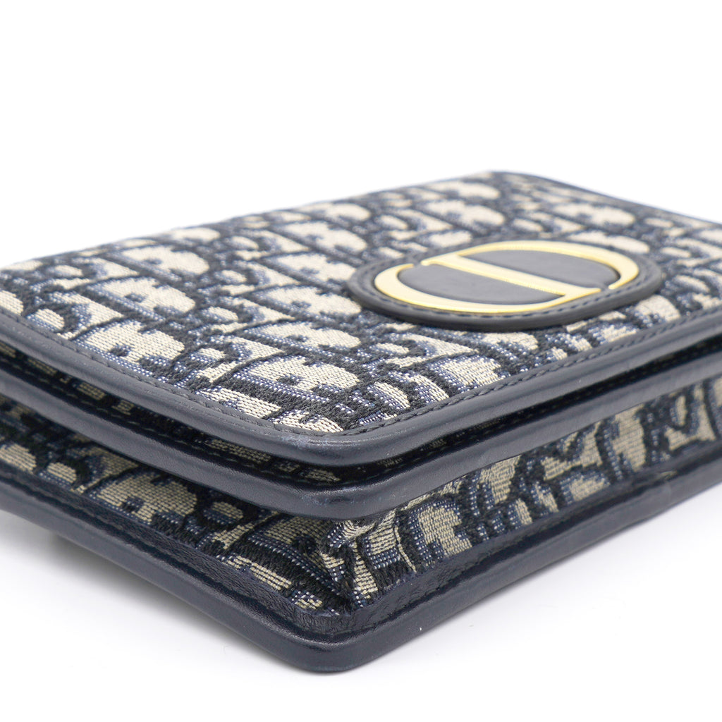 | The 2-in-1 30 Montaigne pouch is crafted in blue Dior Oblique jacquard and combines a timeless look with a streamlined design. Presenting the emblematic 'CD' initials delicately set on the leather, the two-in-one accessory features a belt and a removable chain. It offers four card slots, one zipped pocket and two patch pockets. The pouch may be worn around the waist, over the shoulder, crossbody or carried by hand. |