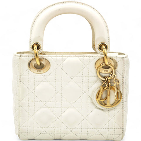 Patent Cannage Mini Lady Dior Ivory