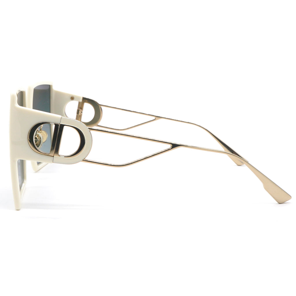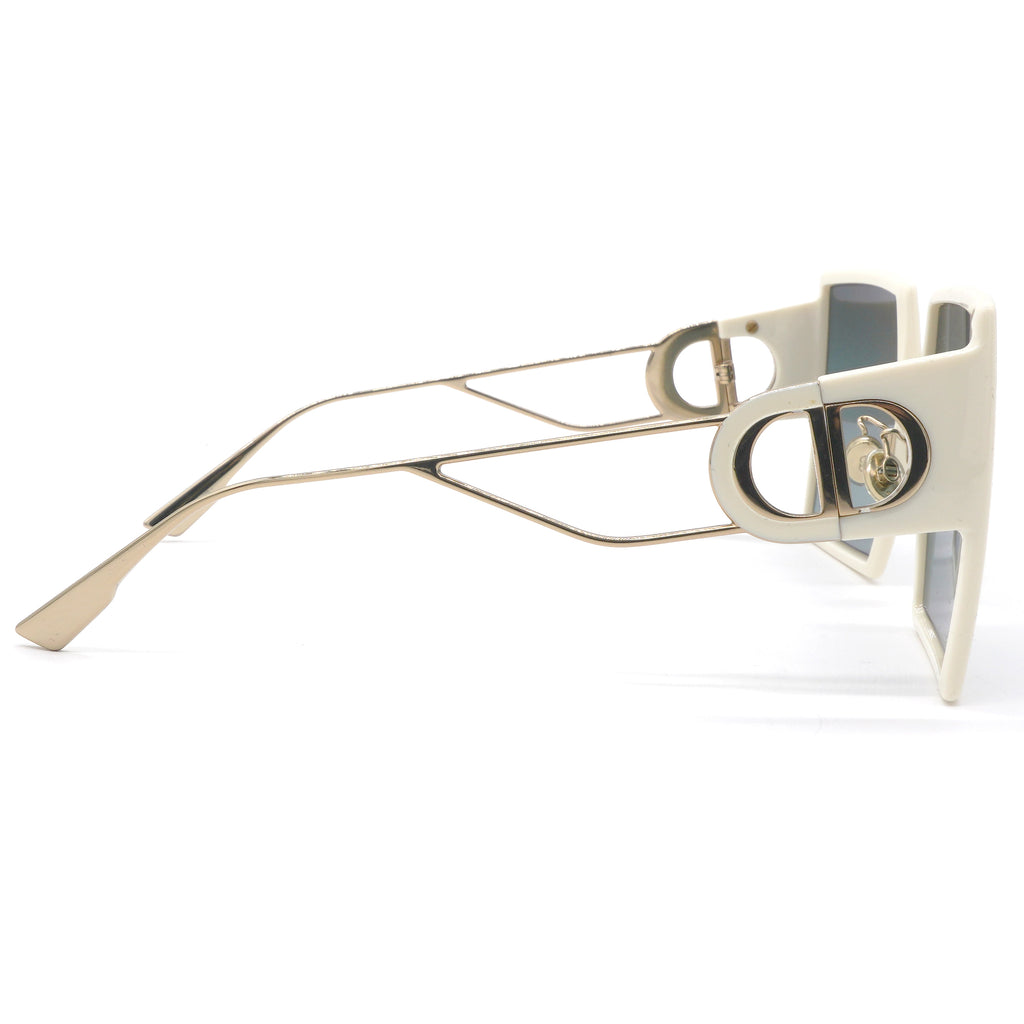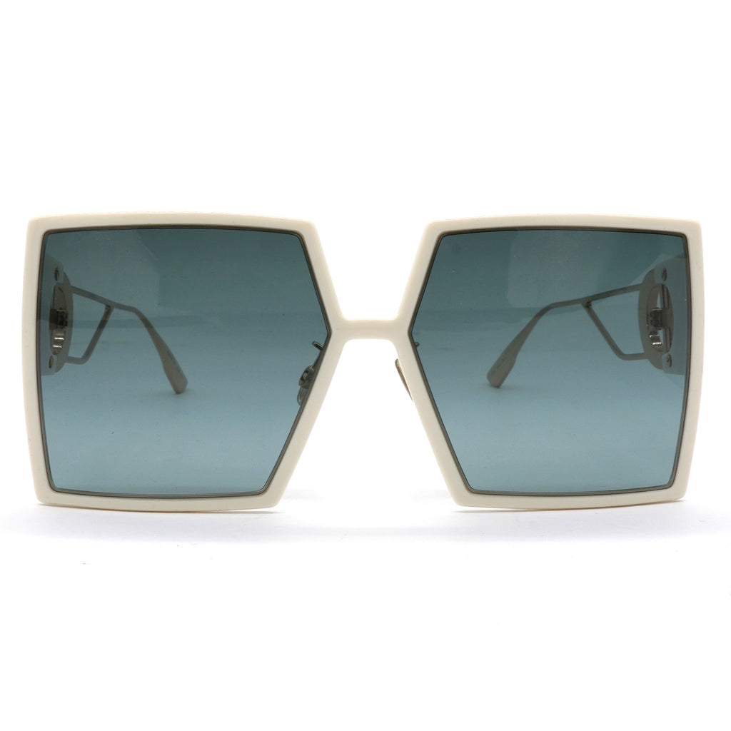 | These modern sunglasses feature oversized squared rims in white and grey lenses. The arms feature an engraved CD monogram at the temple. |