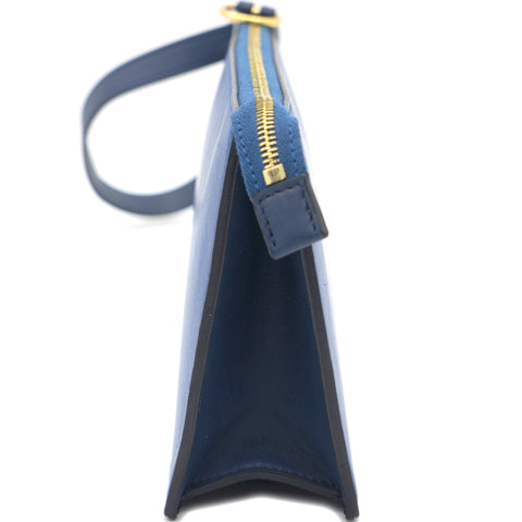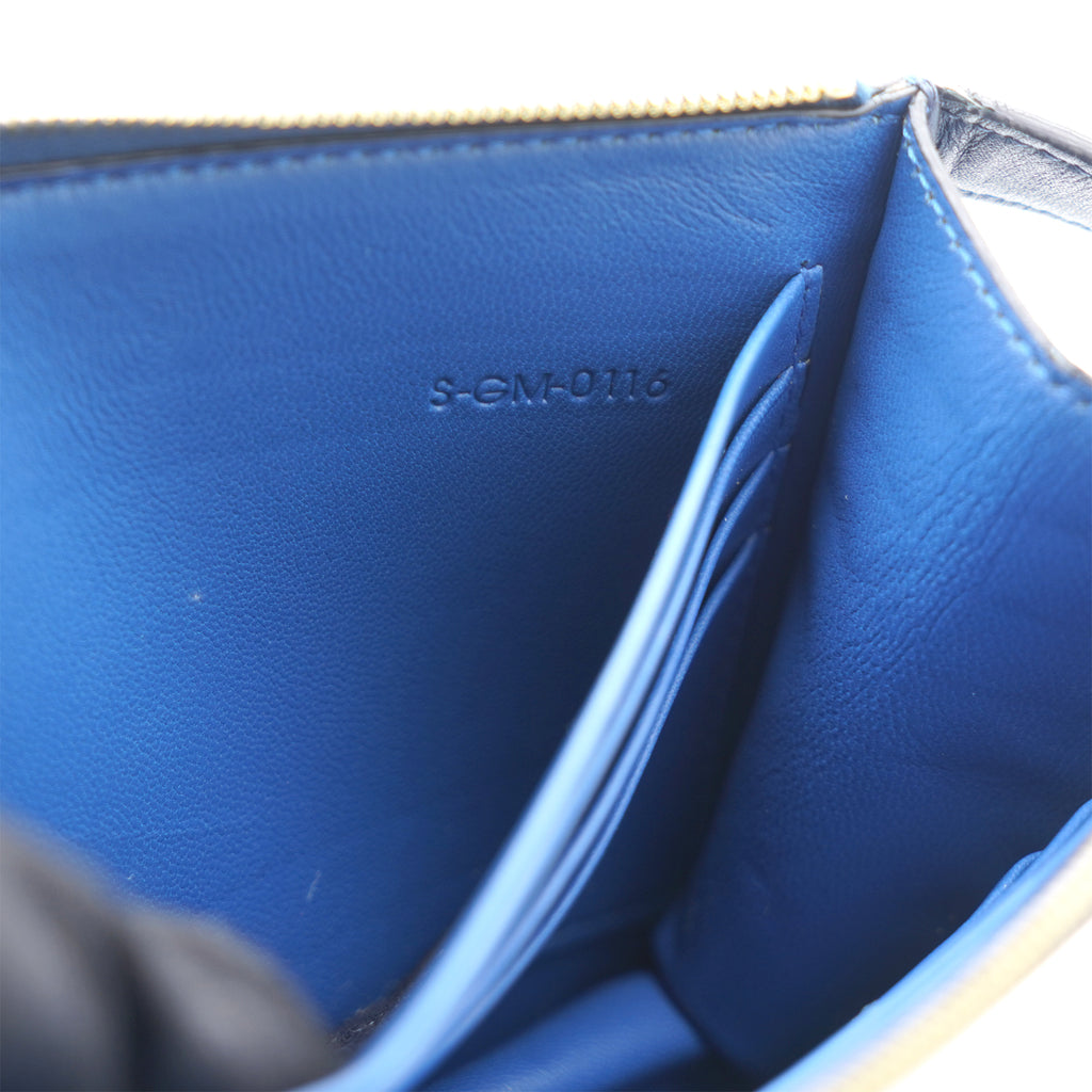 Our eyes are hooked on this gorgeous pouch from the house of Celine. It has been crafted from leather and designed with indigo hue. It has a zipper on top which opens to six card compartments on each side and one main compartment that will hold all your essentials.