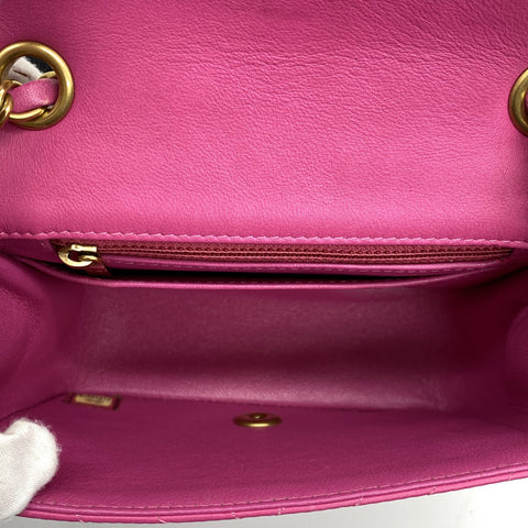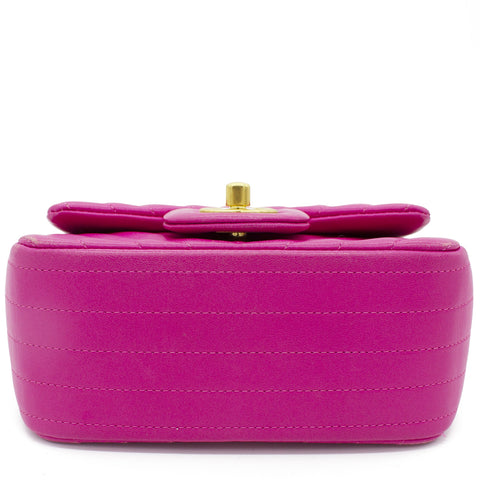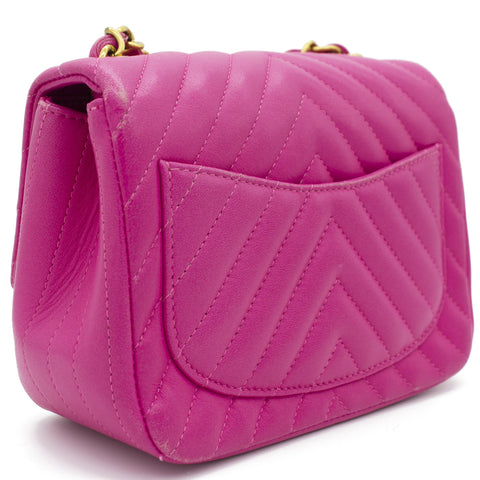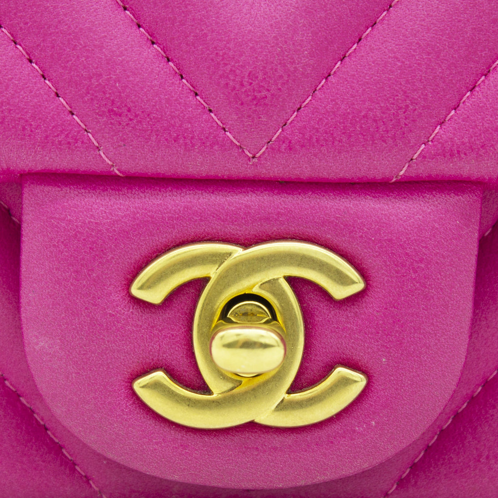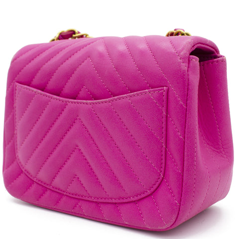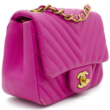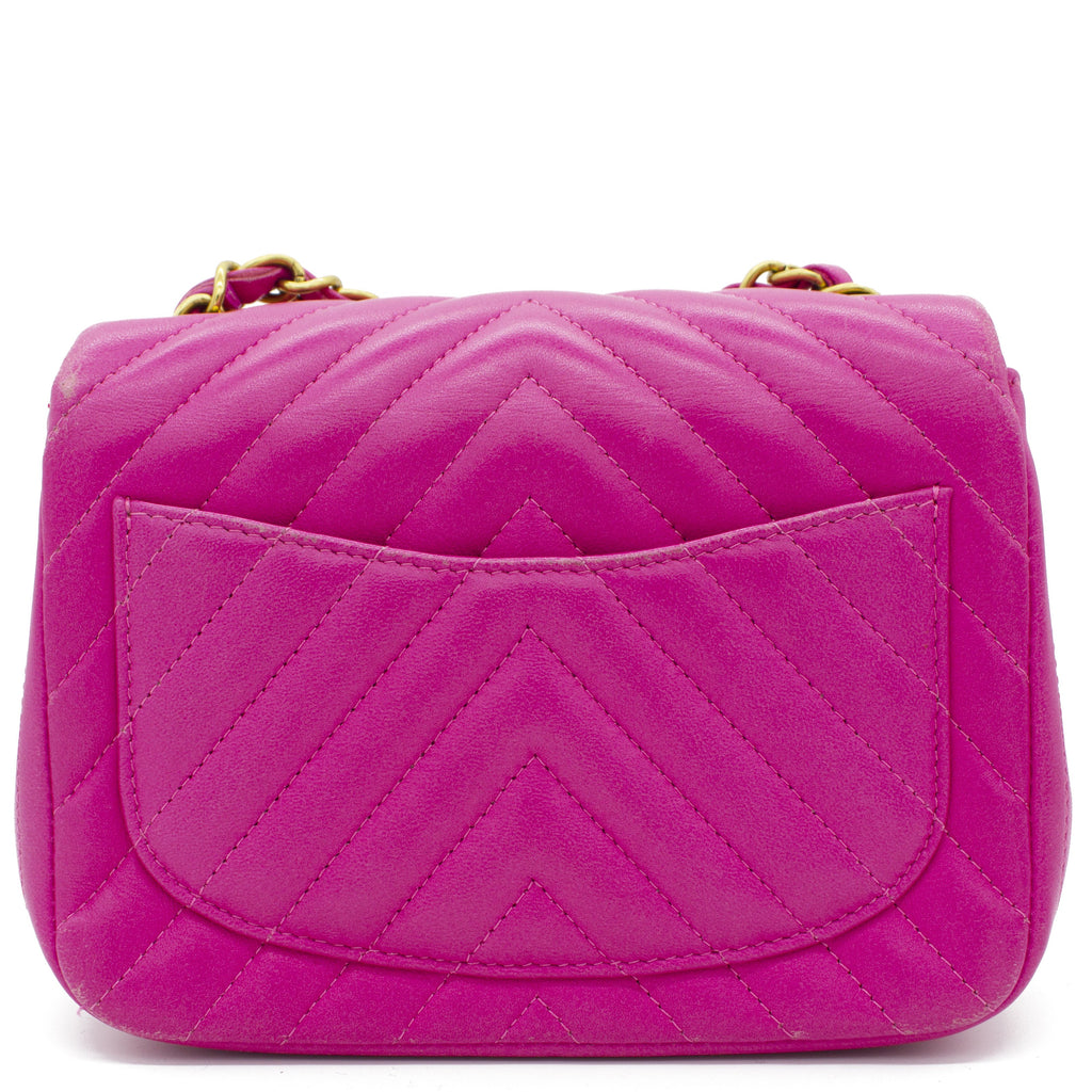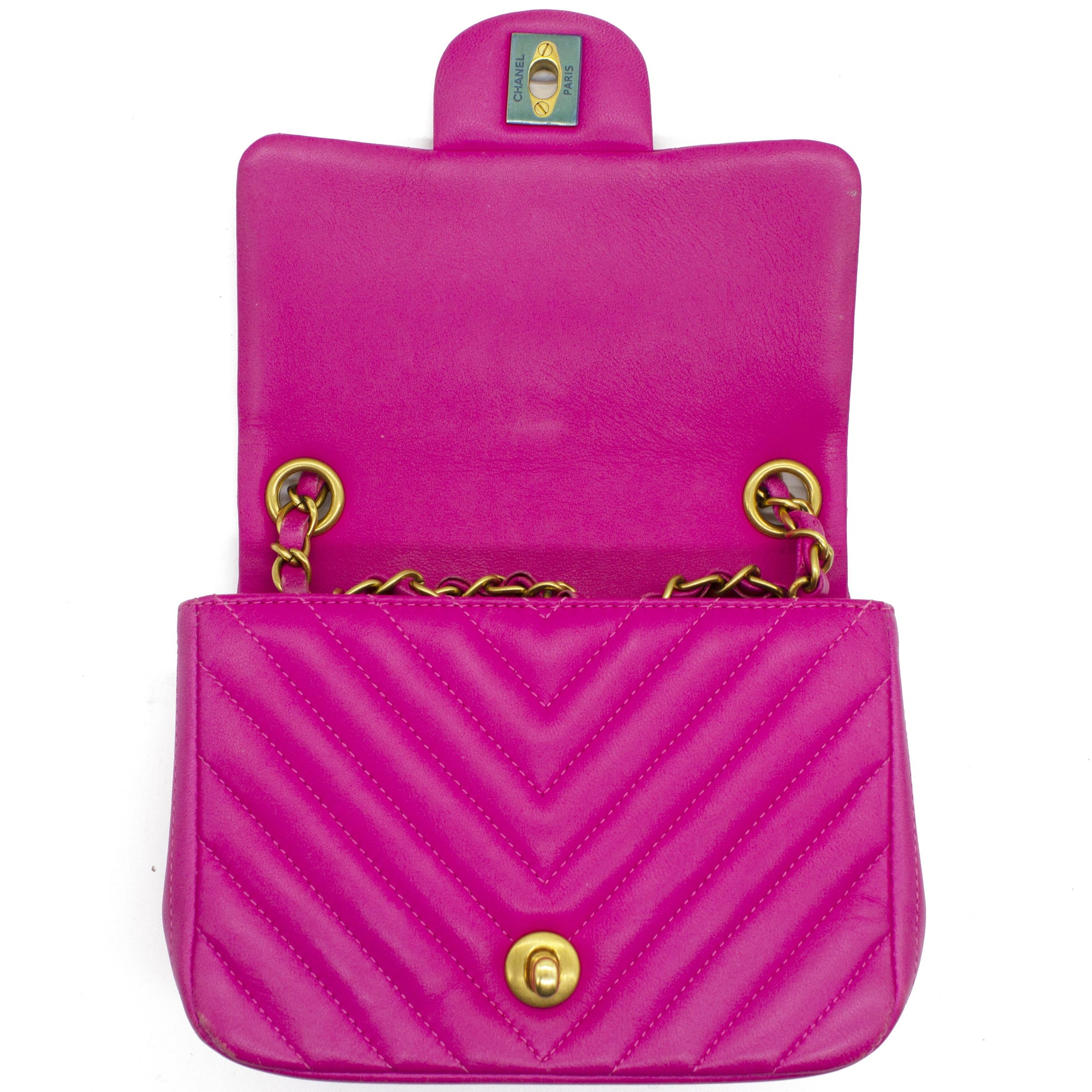 | This gorgeous rose pink Chevron Quilted Lambskin Chanel Mini Flap Bag is the perfect everyday bag. Featuring a gorgeous chevron stitched leather with gold-tone hardware and a leather chain strap. This bag will get maximum use! The size is perfect for an everyday bag. |