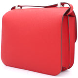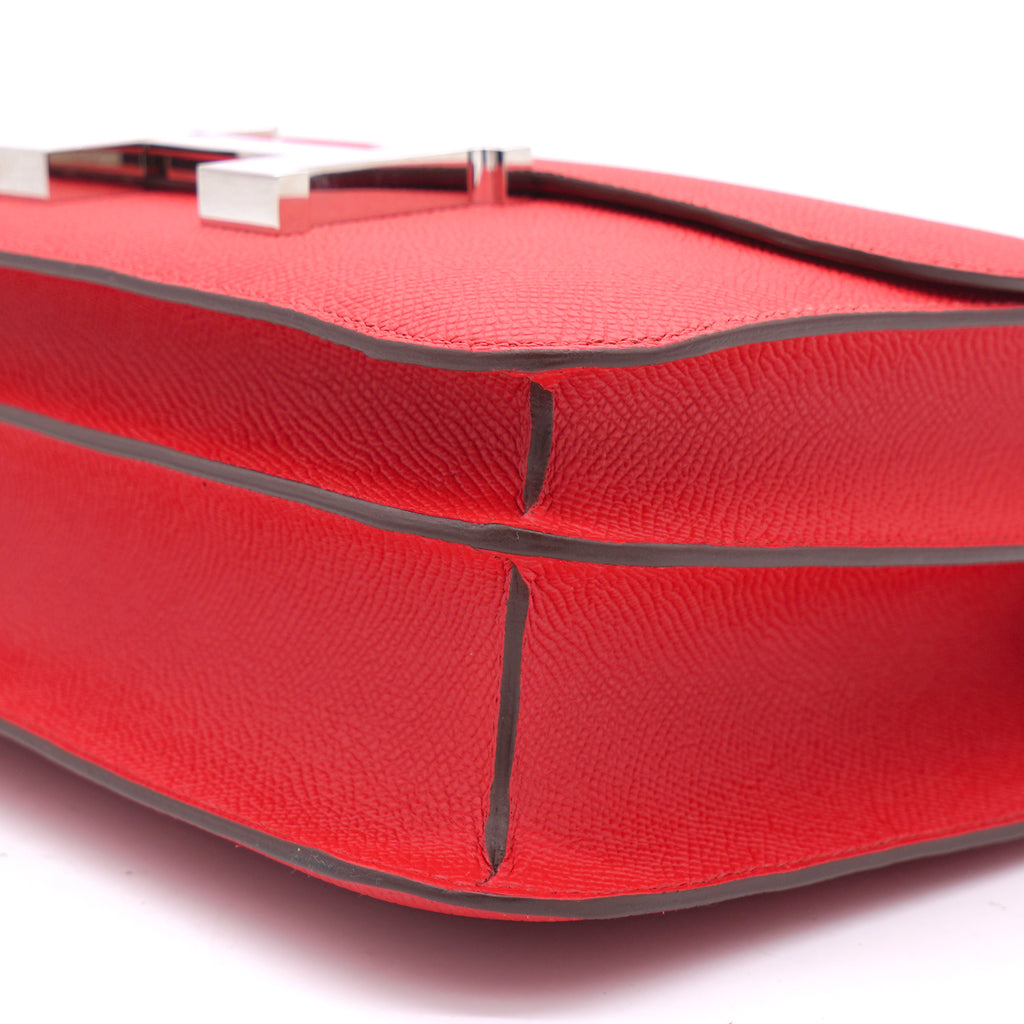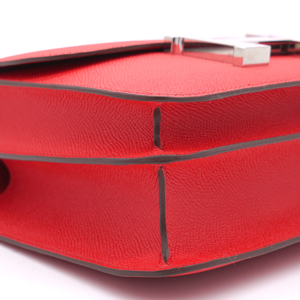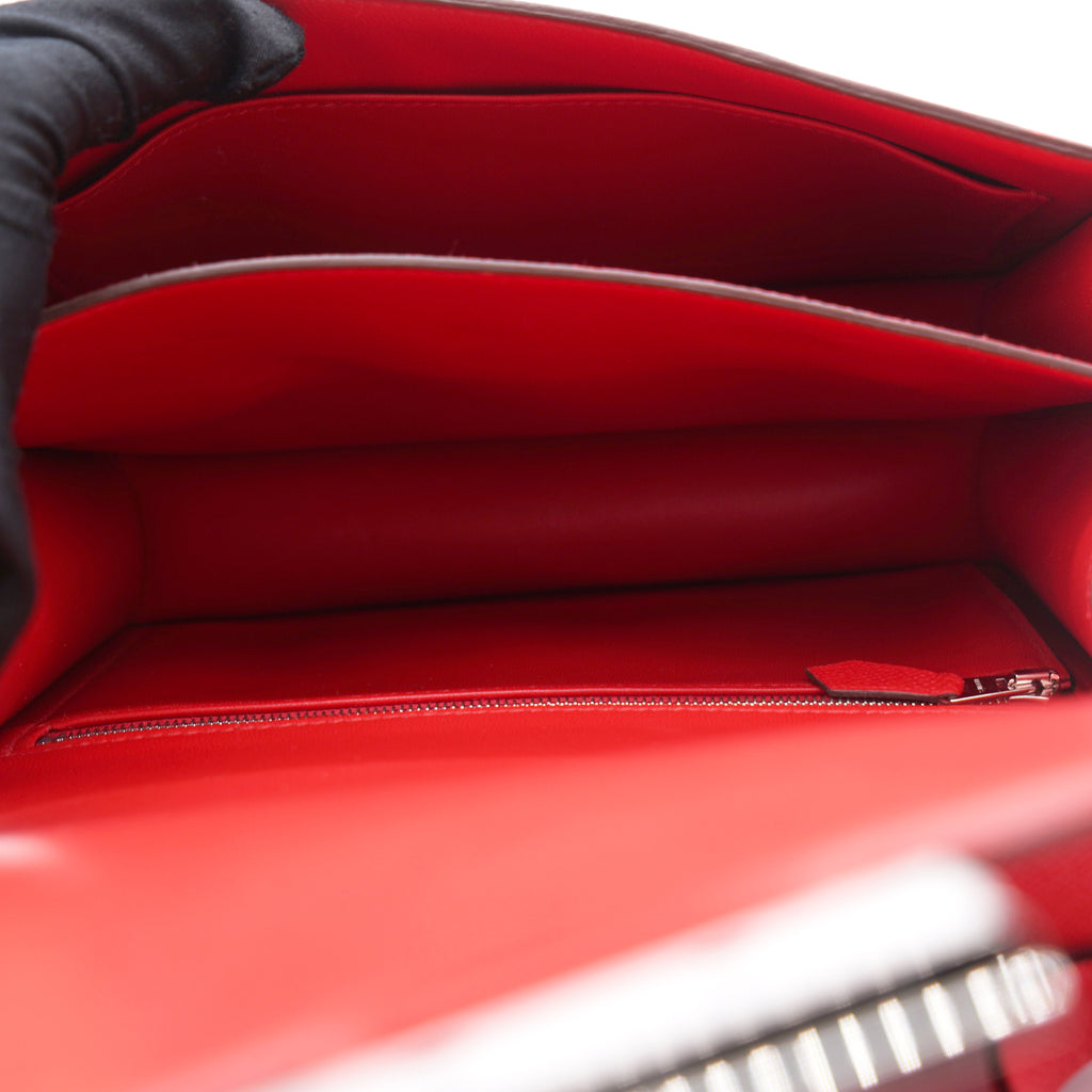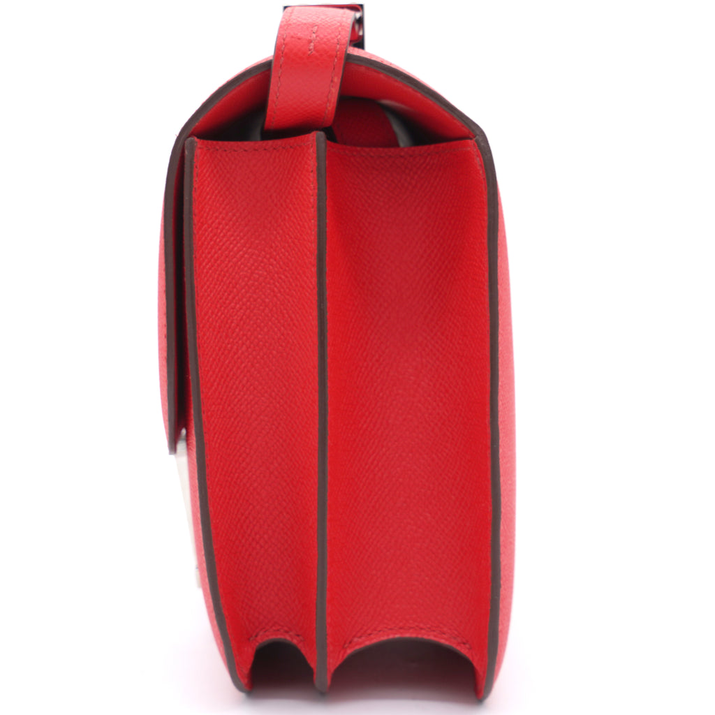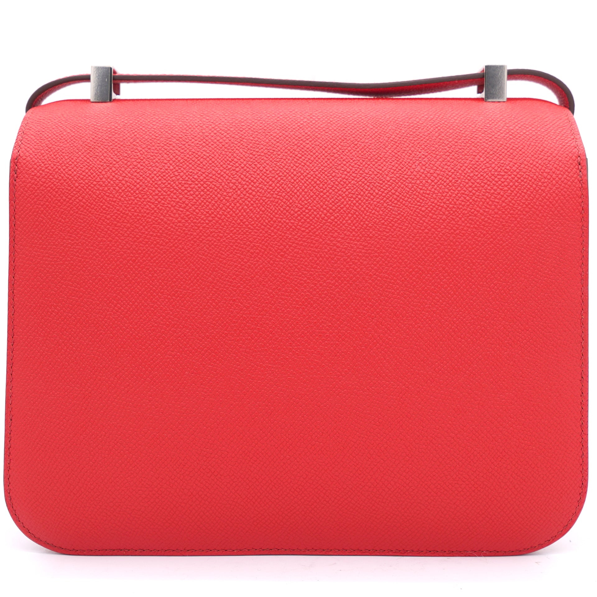 | This stylish shoulder bag is crafted of fine textured epsom calfskin leather in red. This chic bag features a uniquely constructed looping shoulder strap with polished palladium links and a top flap that tucks into a prominent H in palladium hardware and pink. This opens to a partitioned lambskin leather interior with a zipper and patch pocket. This is an excellent shoulder bag, ideal for everyday wear |