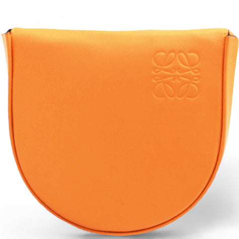 | This chic crossbody is crafted of smooth calfskin leather in light orange. The bag features a long strap and a full frontal flap with pull tab. The flap opens up to a light orange leather interior with a small patch pocket like compartment and credit card slots. |