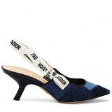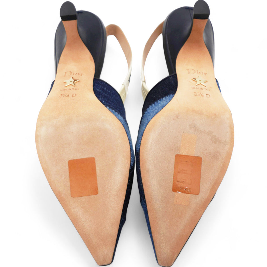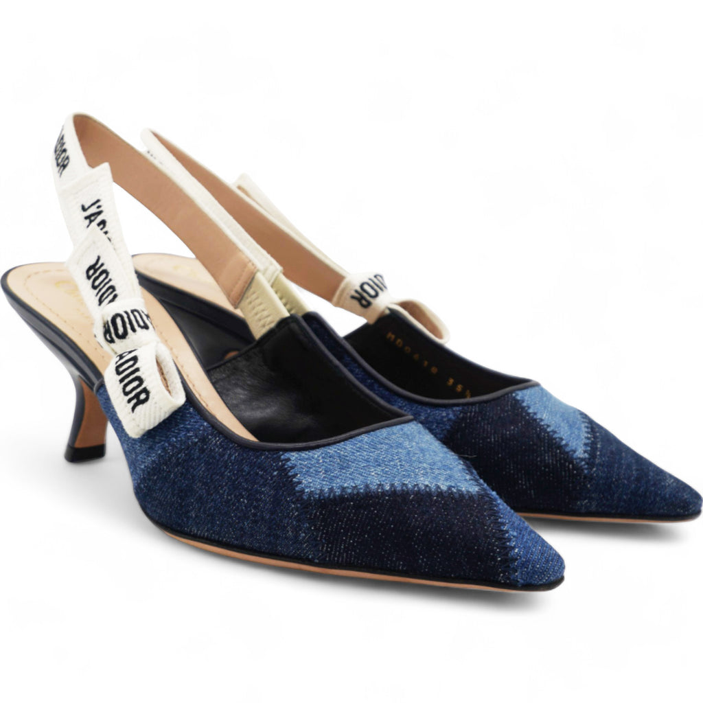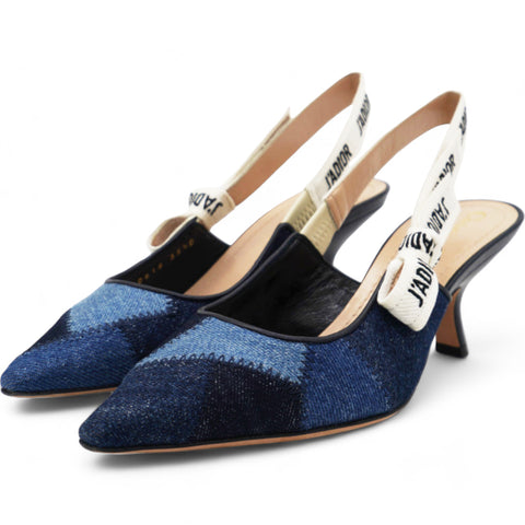 Denim Ribbon Patchwork J'Adior Slingback 65mm Pumps Size35.5