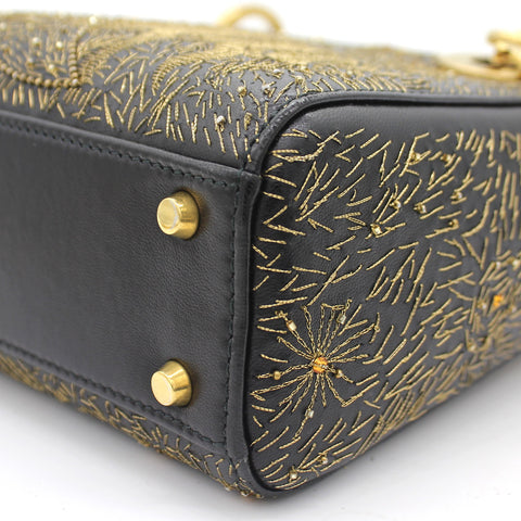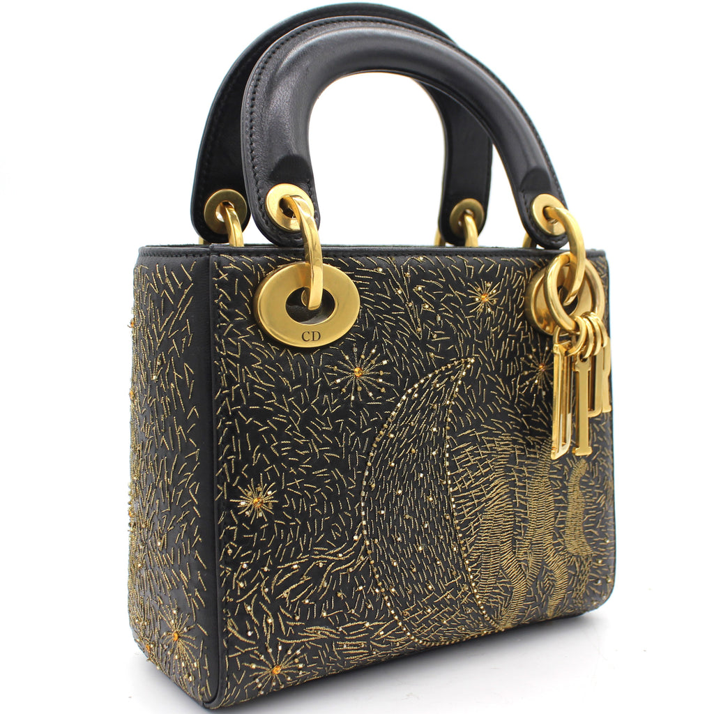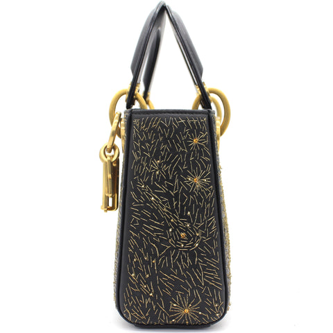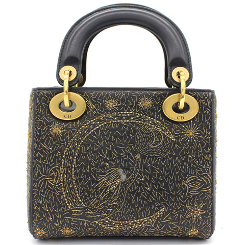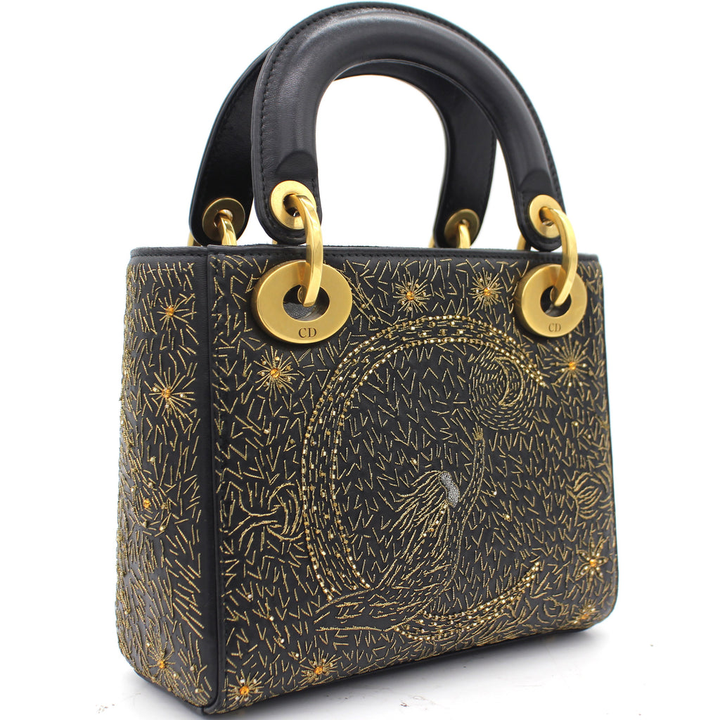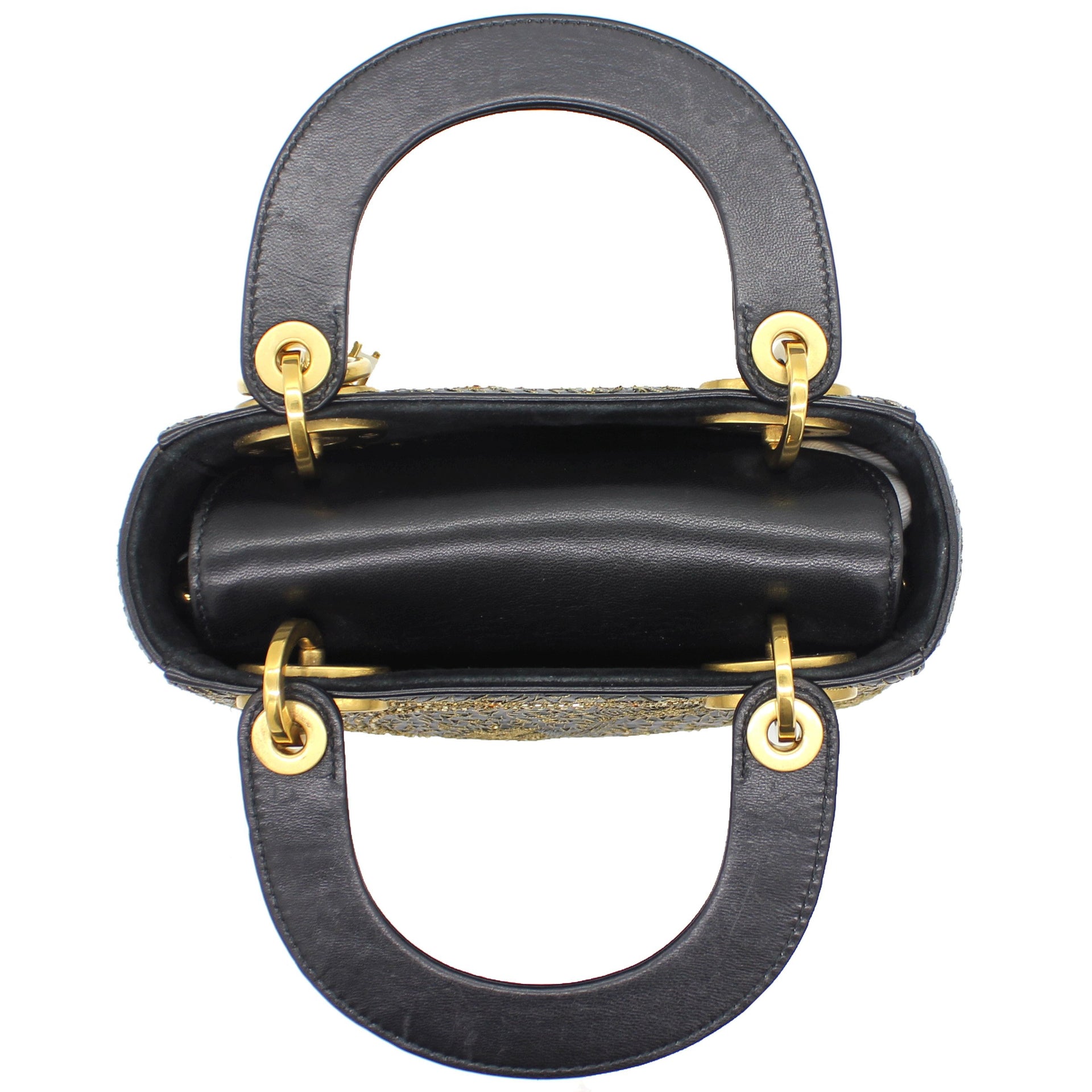 | From the Fall/Winter 2017 Collection by Maria Grazia Chiuri, the The moon in my eyes Lady Dior Bag is designed with gold but notable yellow threads. It’s also crafted with the new modern DIOR charm and vintage golden hardware, featuring rolled handles and adjustable shoulder strap. |