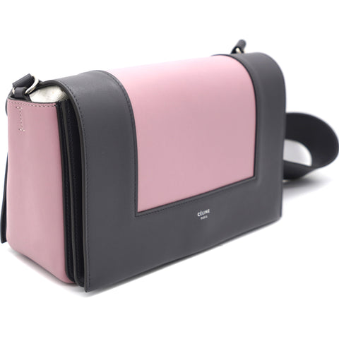 Smooth Calfskin Medium Frame Shoulder Bag Grey Pink