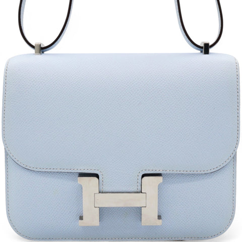| This chic bag is finely crafted of leather in blue. The bag features a leather crossbody shoulder strap, a front flap, and polished silver Hermes H logo. The flap opens to a partitioned leather interior with patch pockets. |