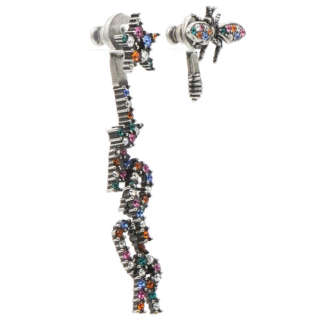 | These stunning earrings feature a bee with multicolor crystals, encrusted wings and a multicolor crystal encrusted star with J'Adior suspended beneath on the opposite earring. |
