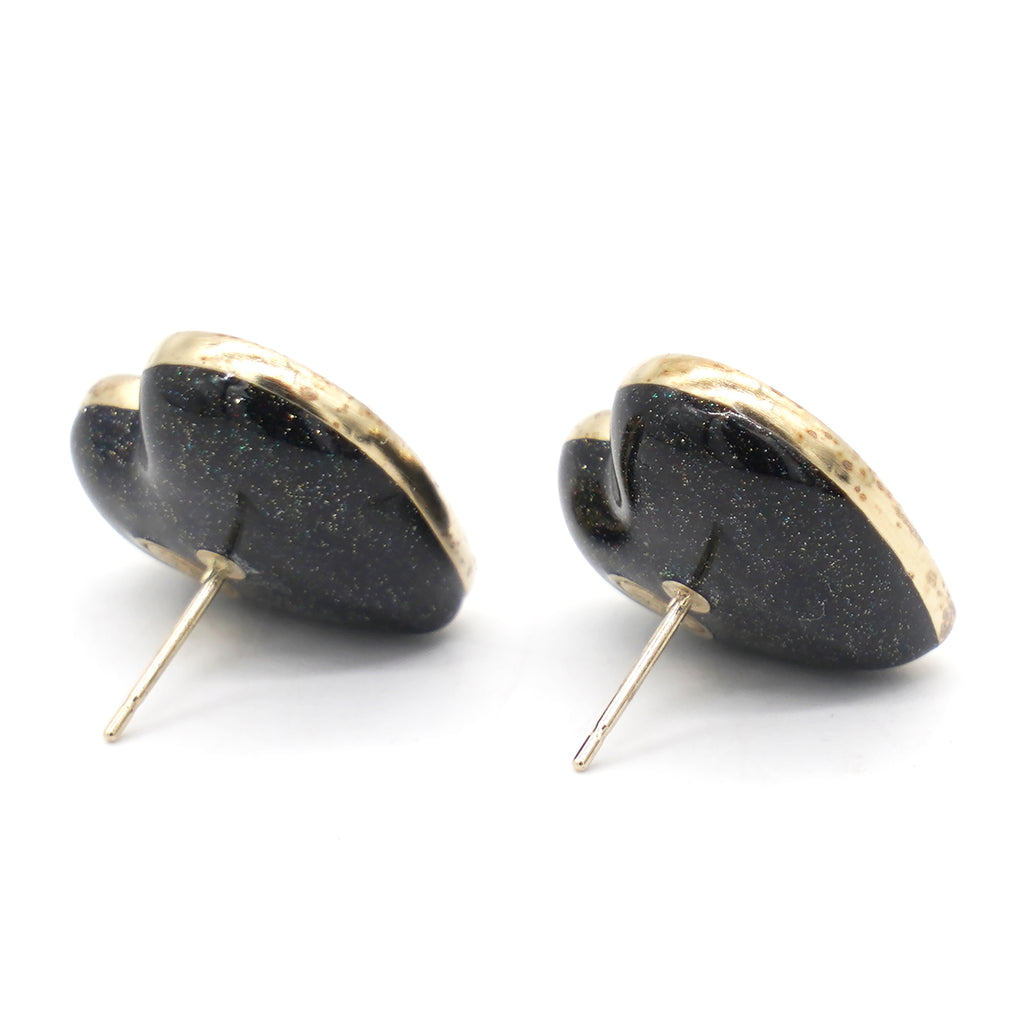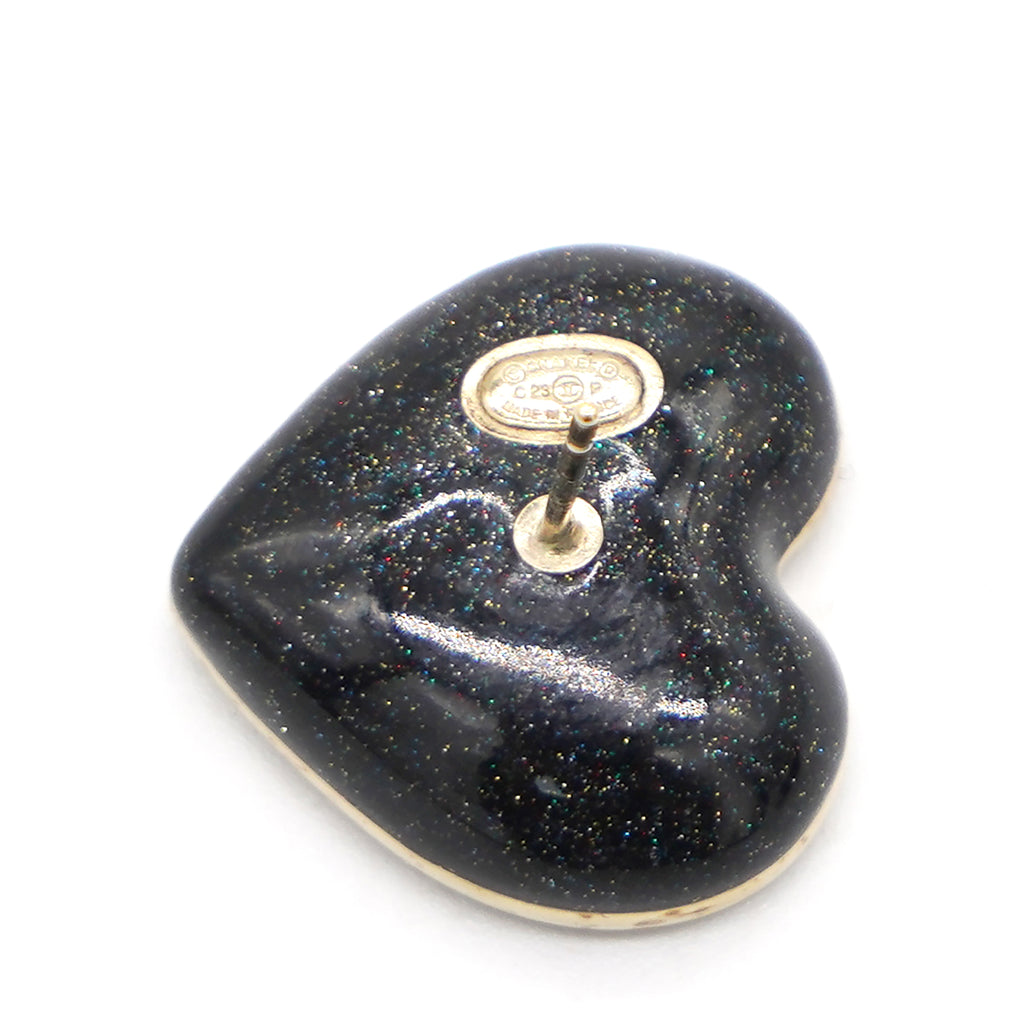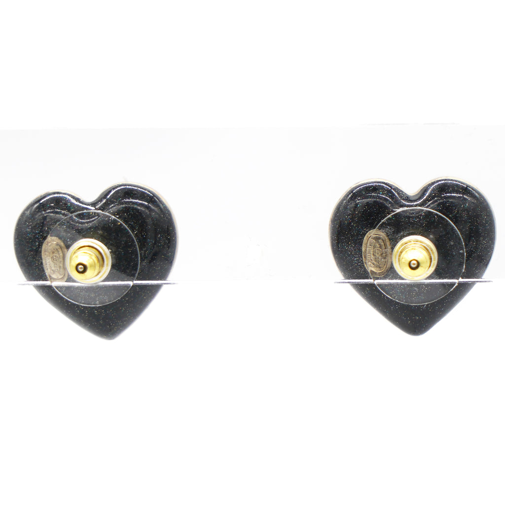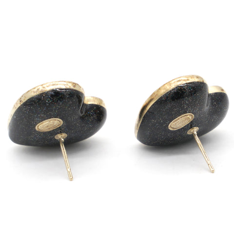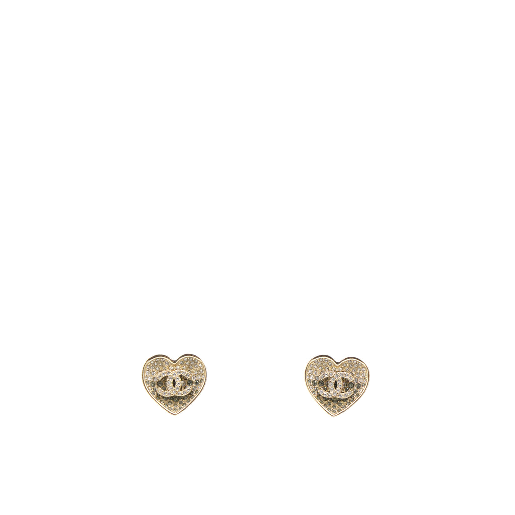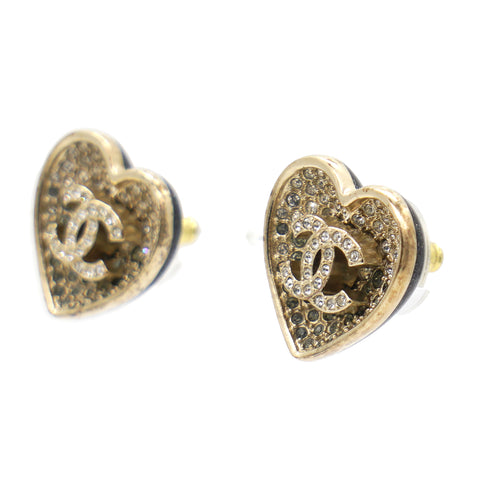Crystal Metal CC Heart Earrings Gold