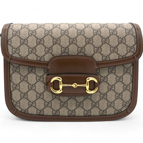 GG Supreme Monogram Horsebit 1955 Shoulder Bag Beige Brown Sugar