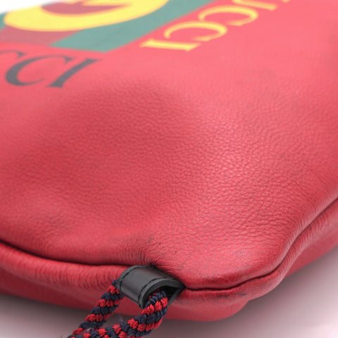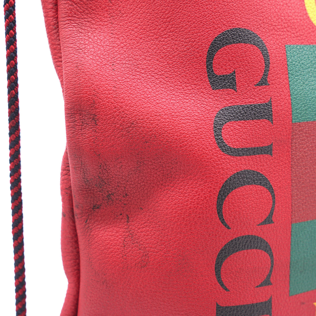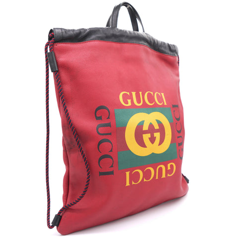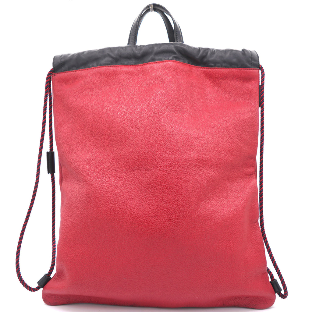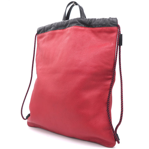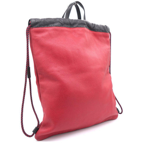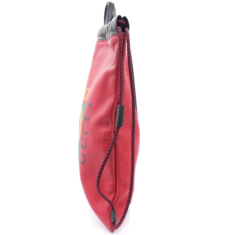 Red Leather Coco Capitan Logo Drawstring Backpack Bag