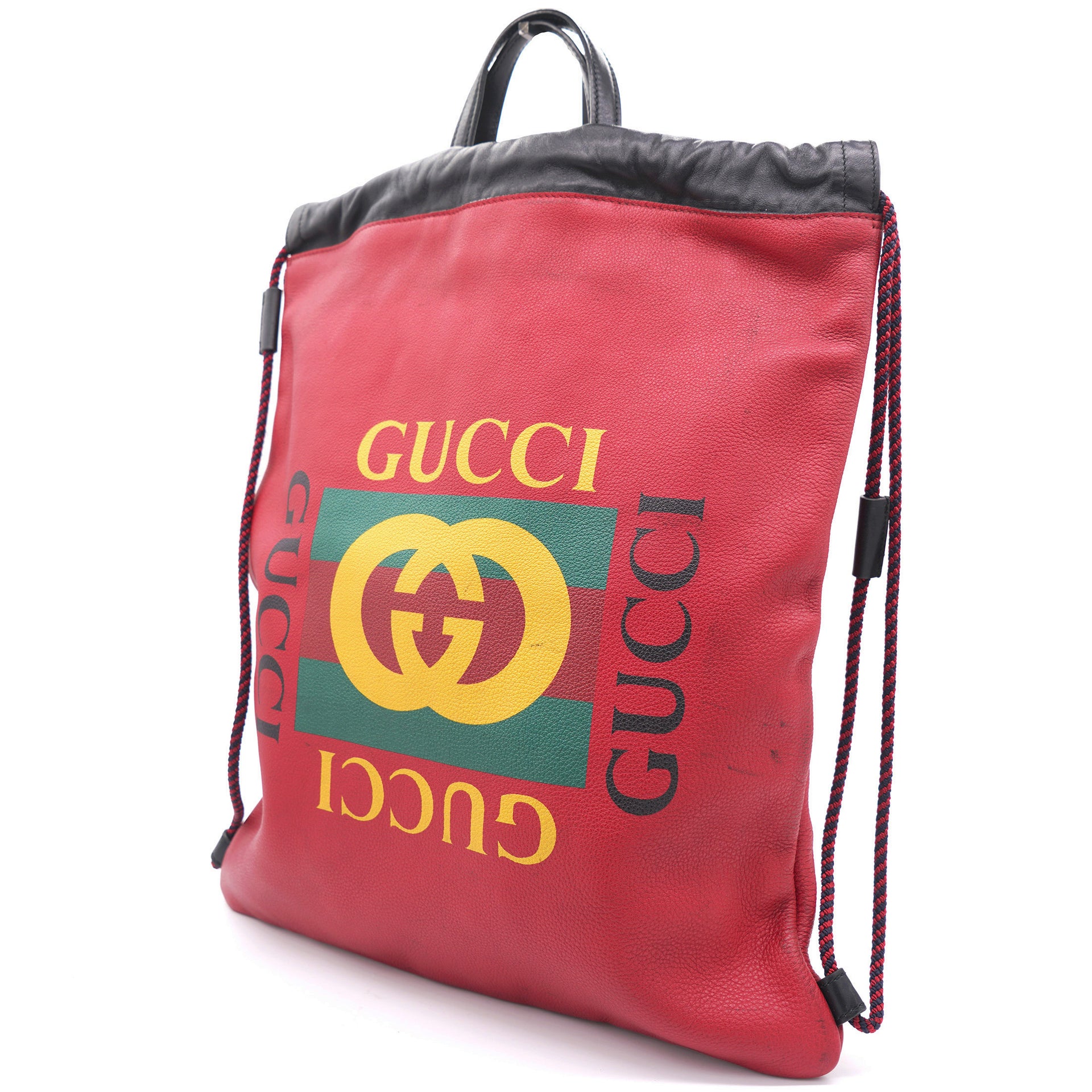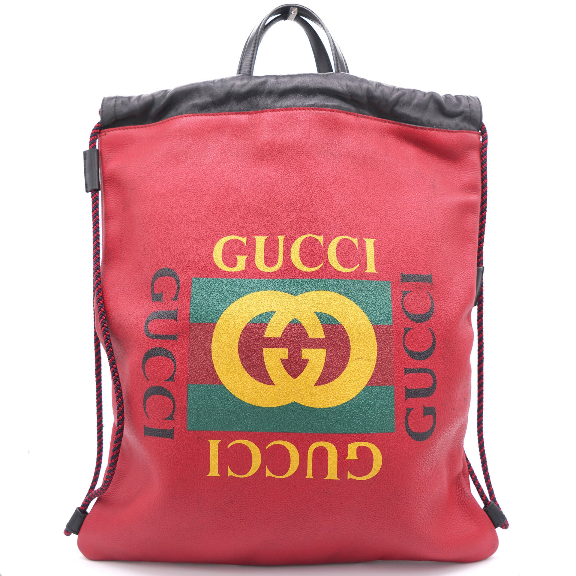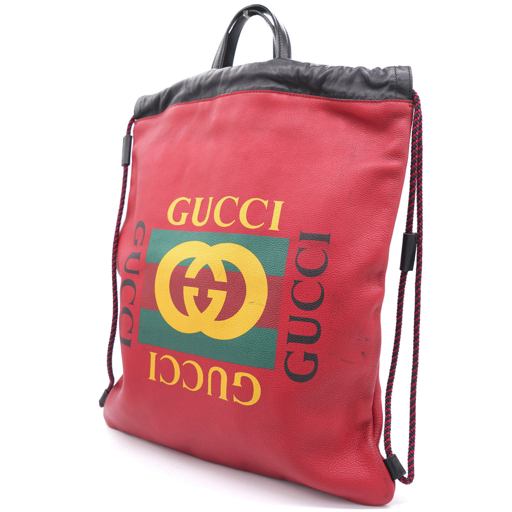 Red Leather Coco Capitan Logo Drawstring Backpack Bag