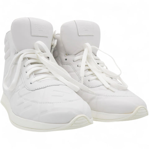 White Leather FF High Top Sneakers Size37