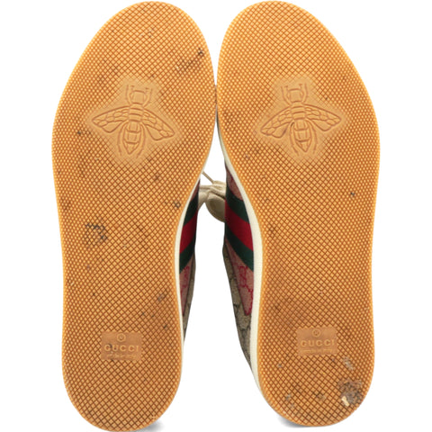 | This version of Gucci's '70s-inspired 'Screener' sneakers is made from monogrammed coated-canvas in red and brown colorways and has contrasting leather trims throughout. Lined with plush terry for warmth, they're complete with the brand's signature webbing and a 'GG' plaque beneath the laces. |