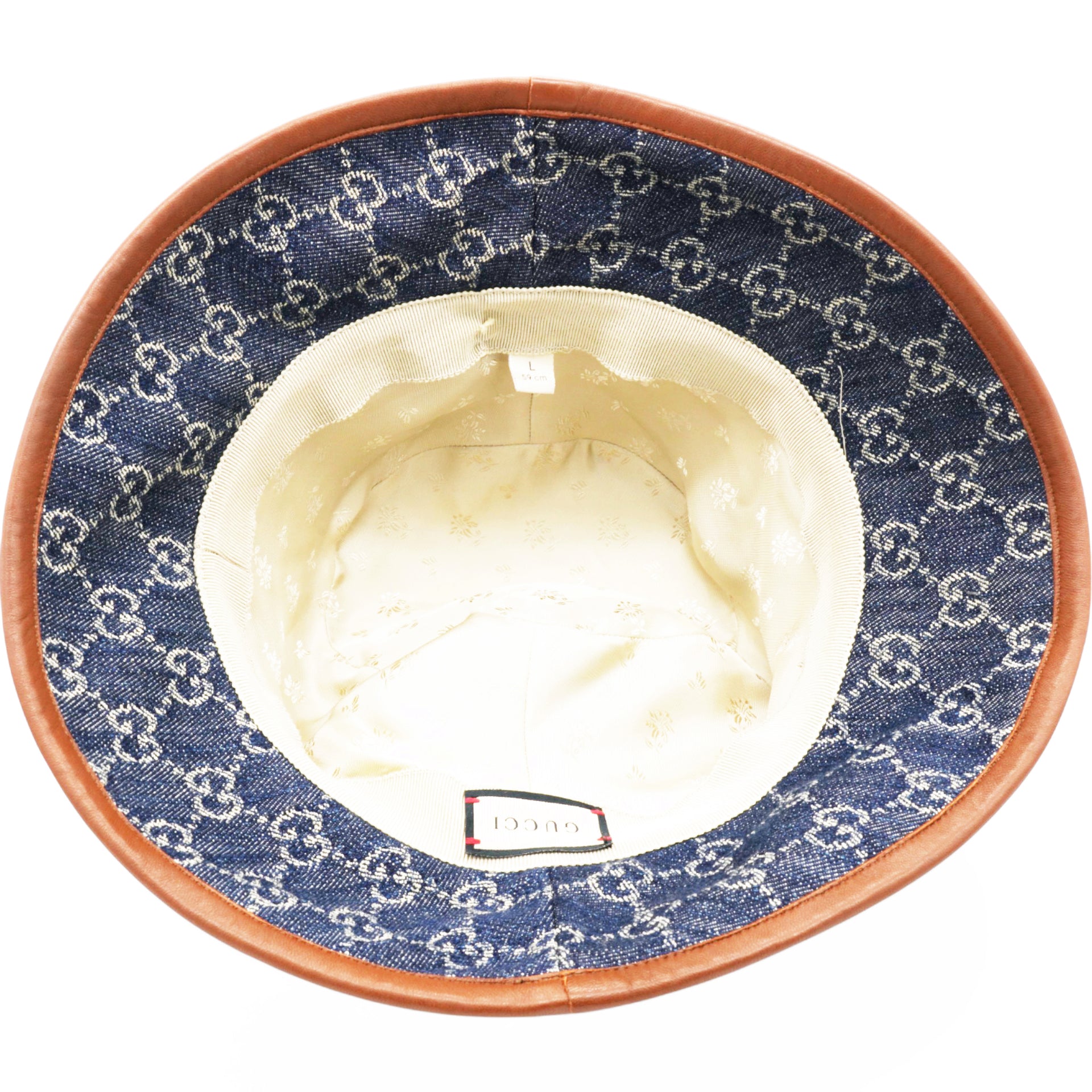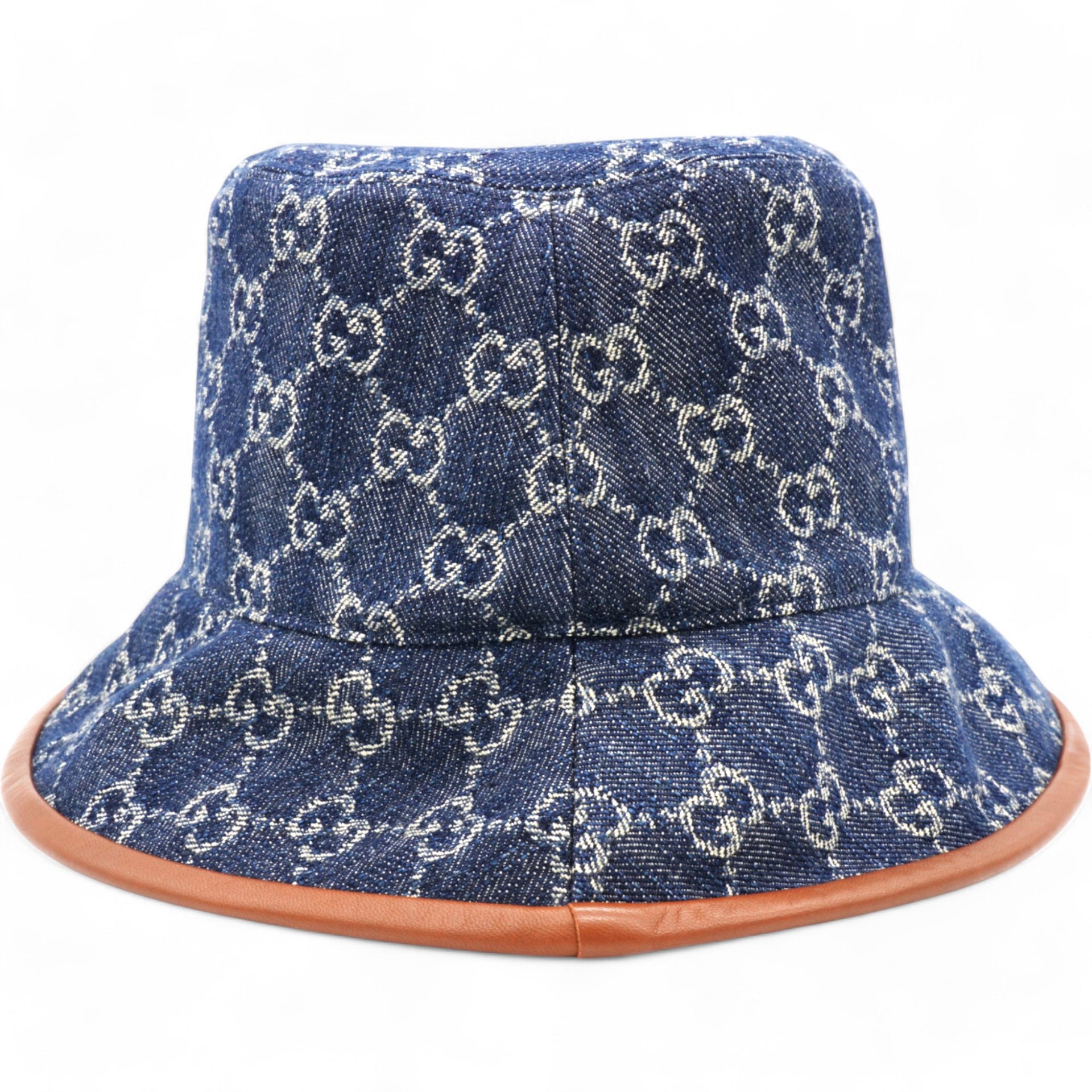 Washed Jacquard Denim Nappa GG Monogram Oscar Bucket Hat Denim Cuir L/59