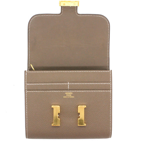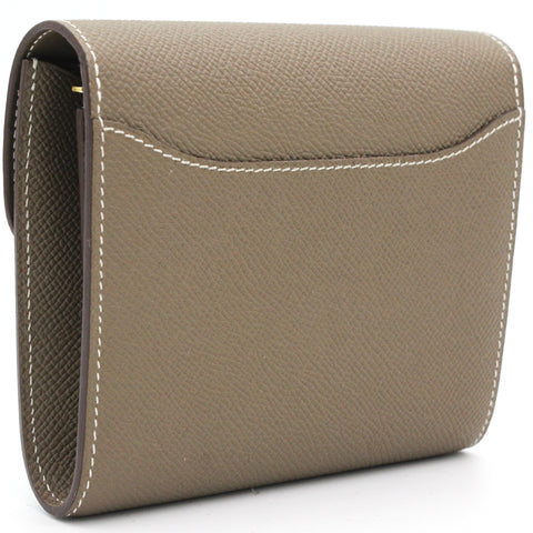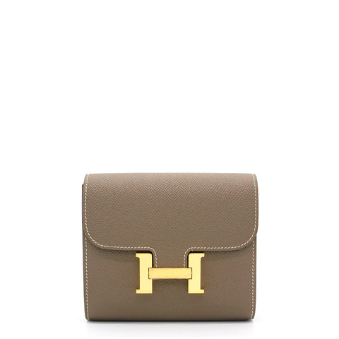 | The Constance wallet from Hermes is nothing less than a wondrous work of art. It is crafted with Epsom leather and is secured by a gold-plated 'H' tab closure. It has undergone the excellent work of talented artisans, with every stitch giving praise to high quality and authenticity. It boasts a well-sized leather interior with a zip compartment and multiple slots for your ease. Brimming with lavish details and artistry, this lovely pink creation deserves to be owned by no one but you. |