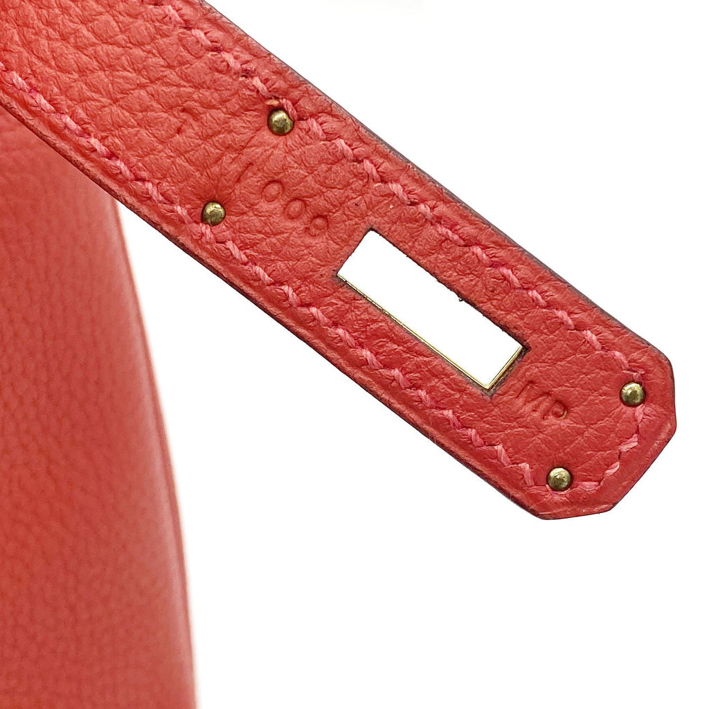 Exterior Material: Géranuim Togo Leather with gold-tone hardware with two top handles and an optional removable shoulder strap. Interior Material: Leather lining with 1 slip pocket and 1 zip pocket Accessories: Hermes Original Box; Hermes Original Dust Bag Date Stamp: T Bought Year: 2016 Color Code: D5 Géranuim |