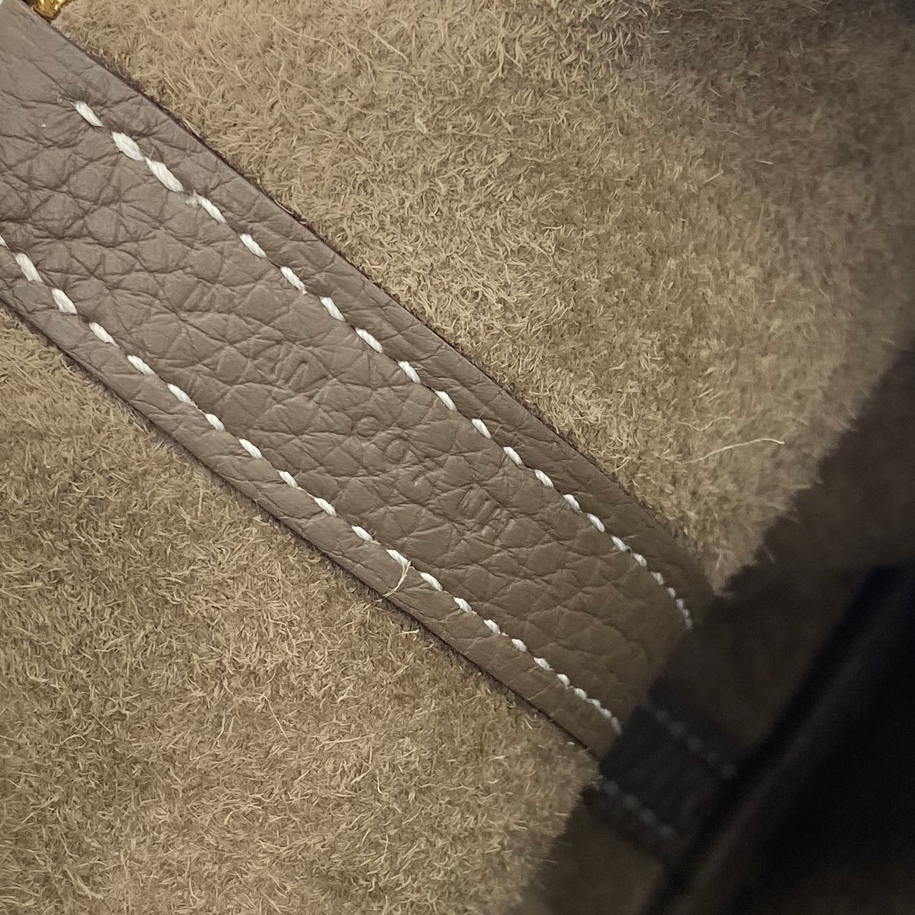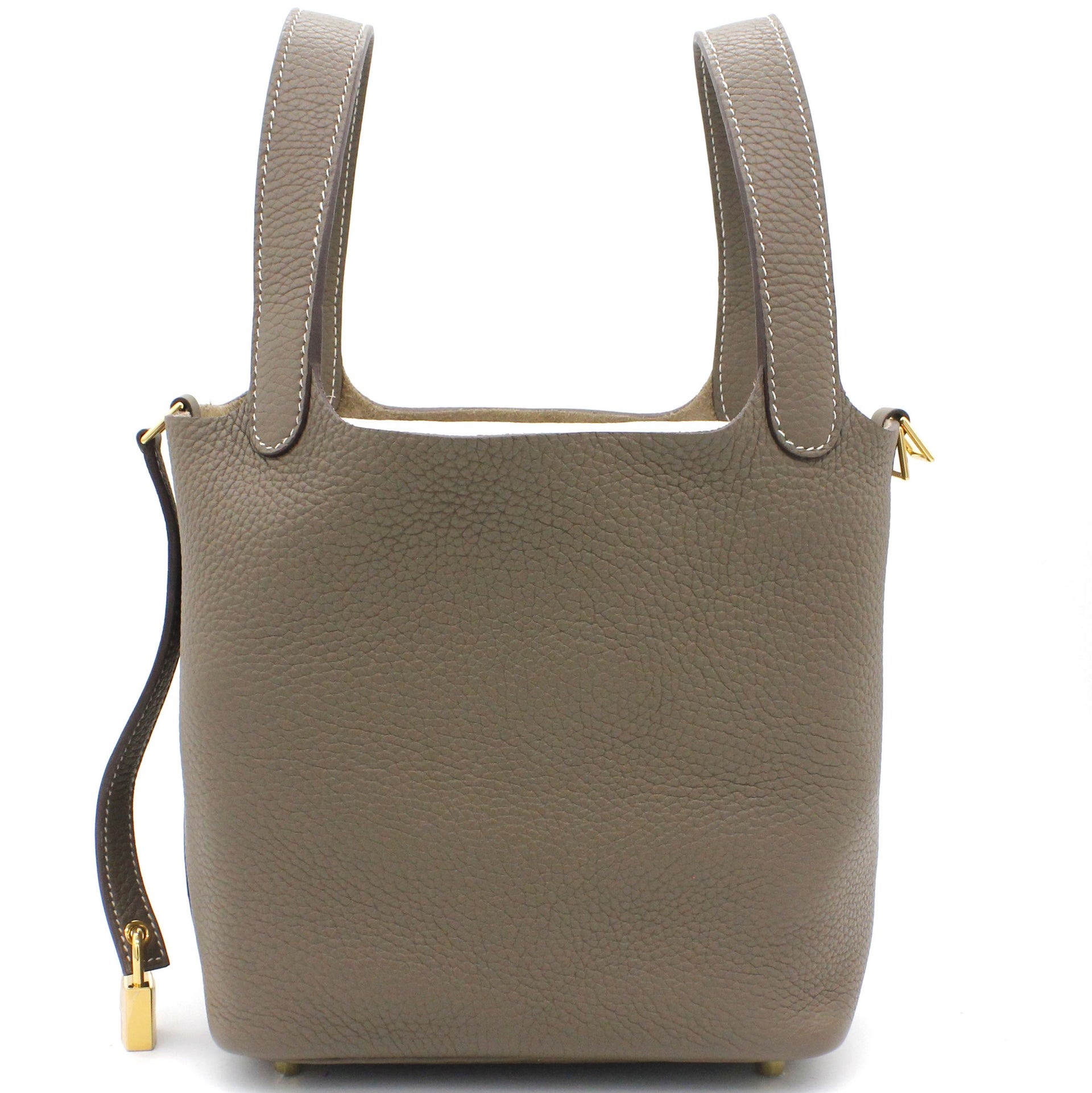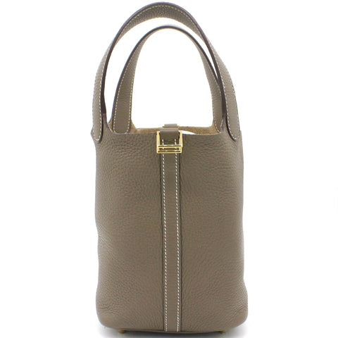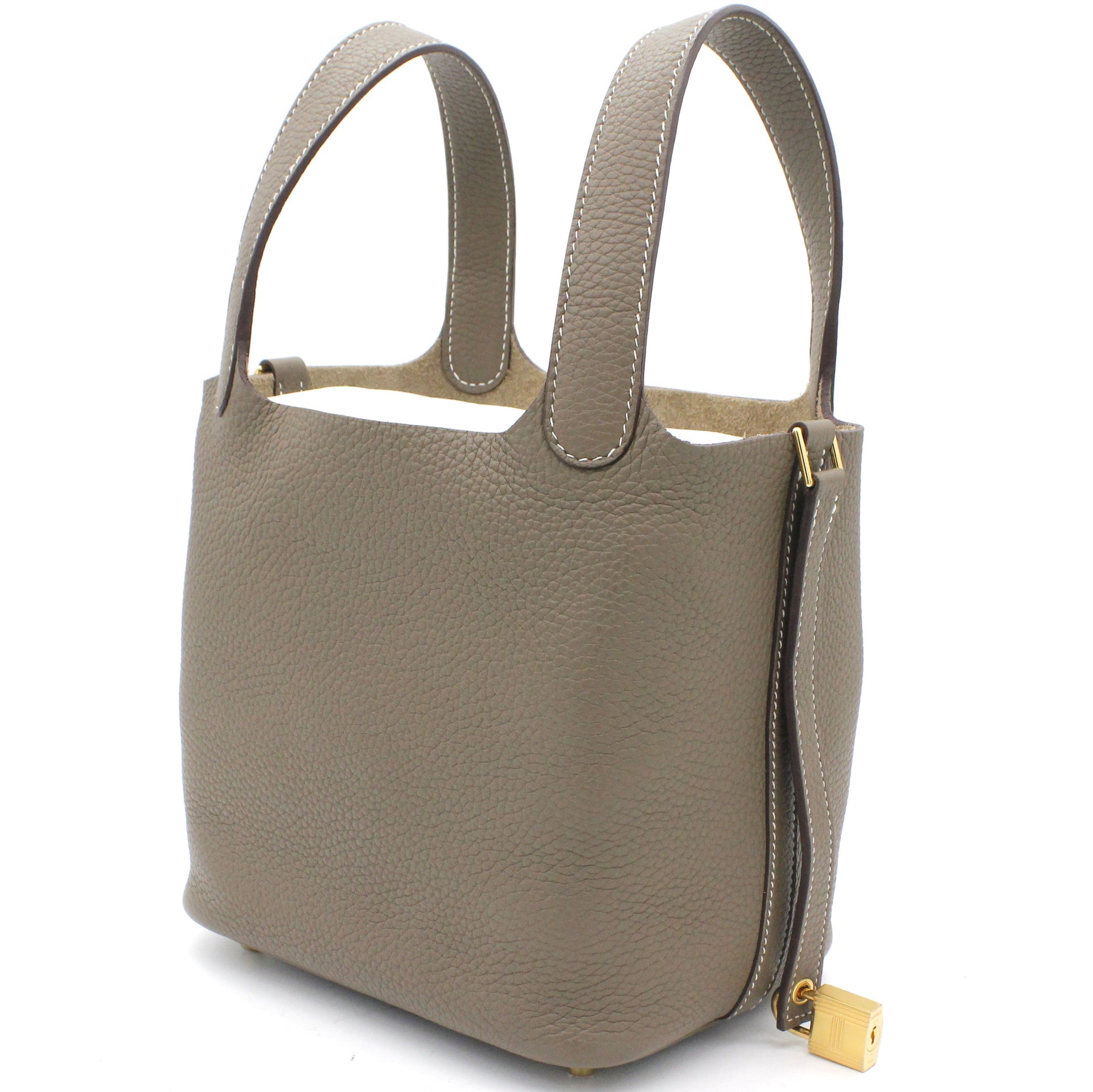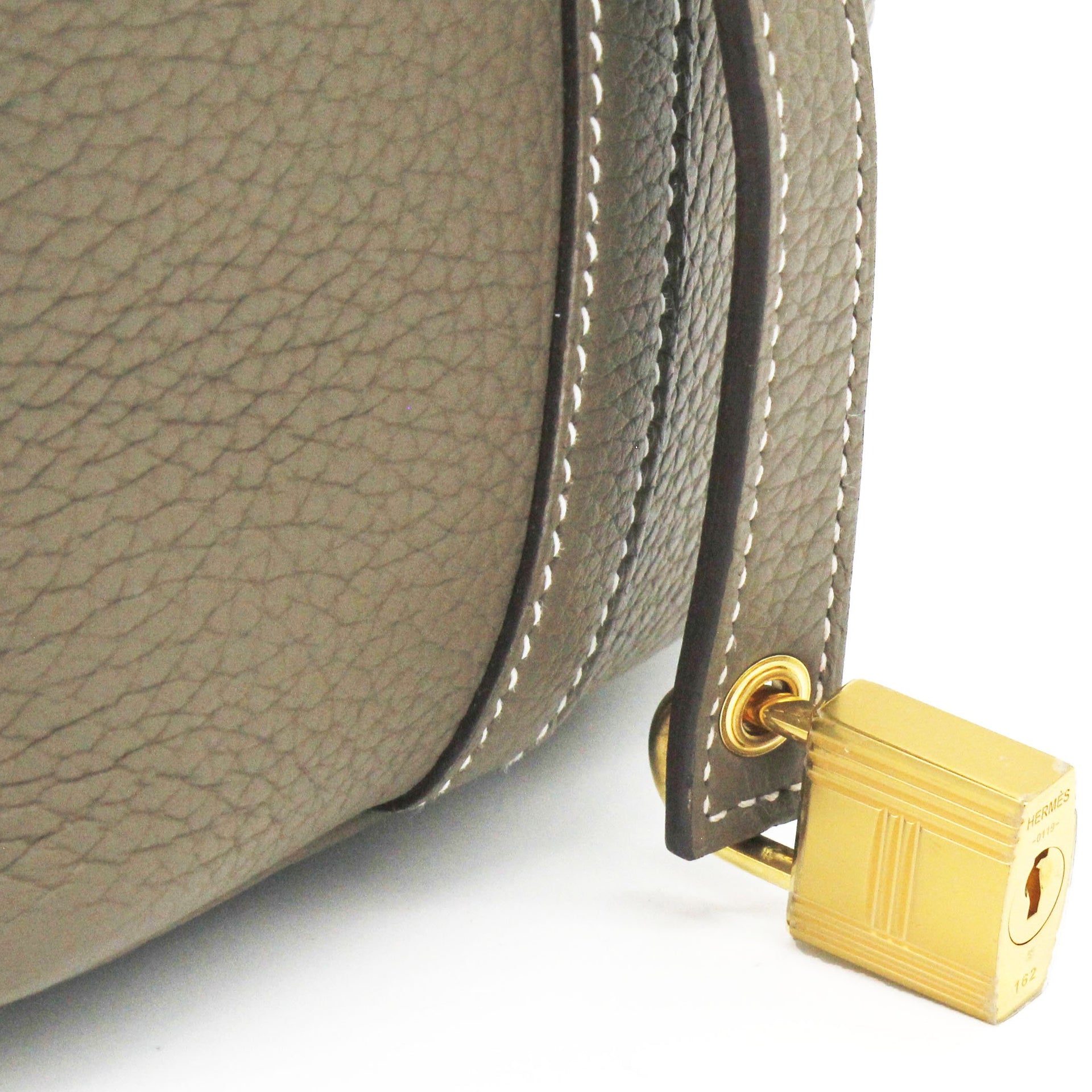 Exterior Material: Etoupe leather exterior with double handles and a strap with a padlock closure. Interior Material: Etoupe leather and suede lining with one main compartments. Accessories: FULL SET: Dust Bag; Photo Receipt; Box Date Stamp: D Production Year: 2019 Color Code: 18 Etoupe |