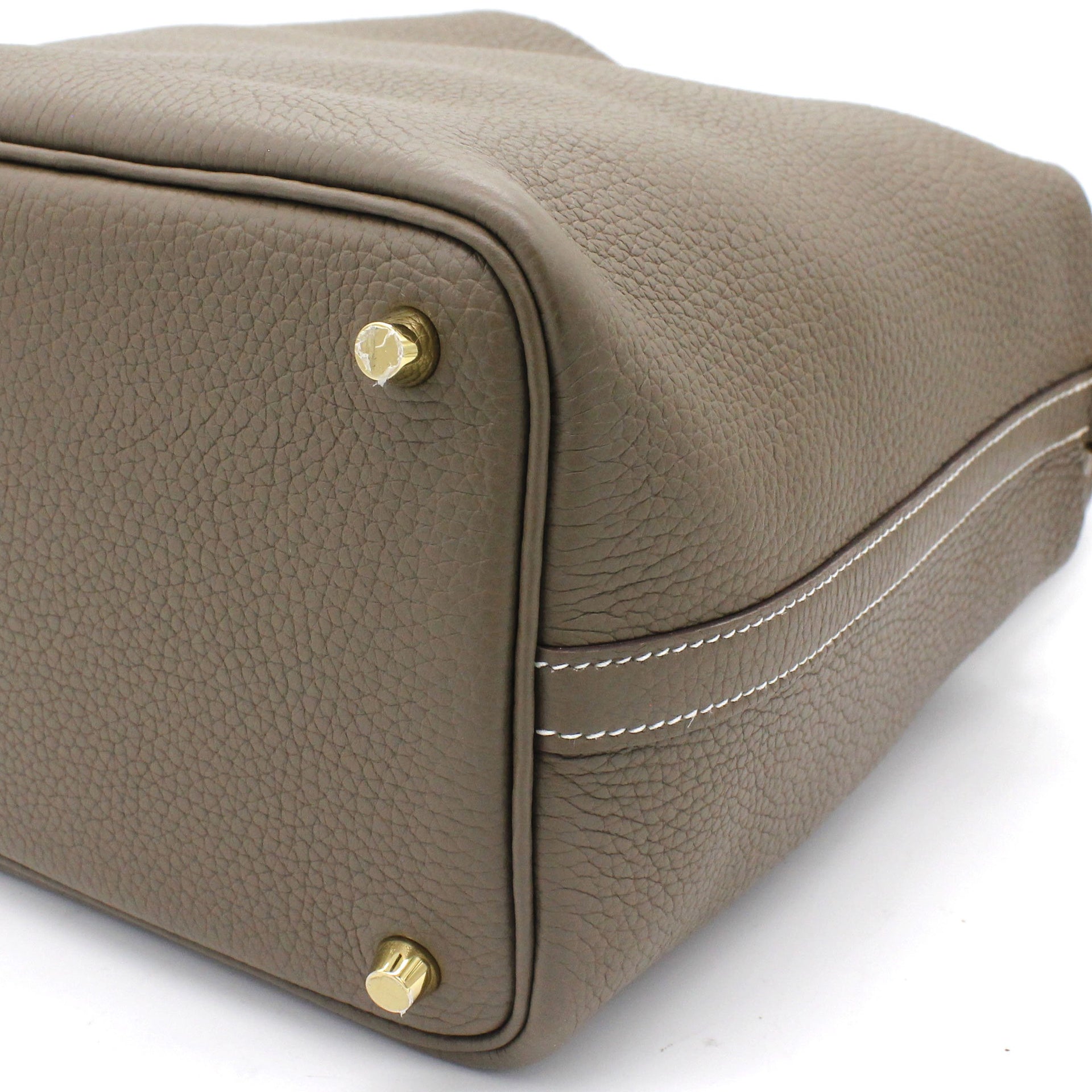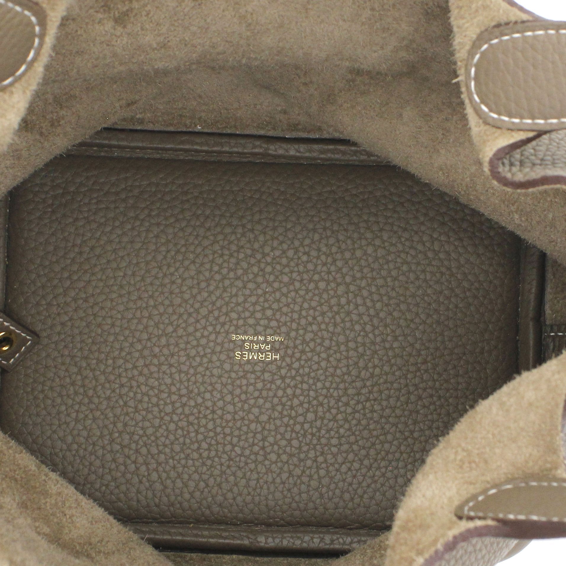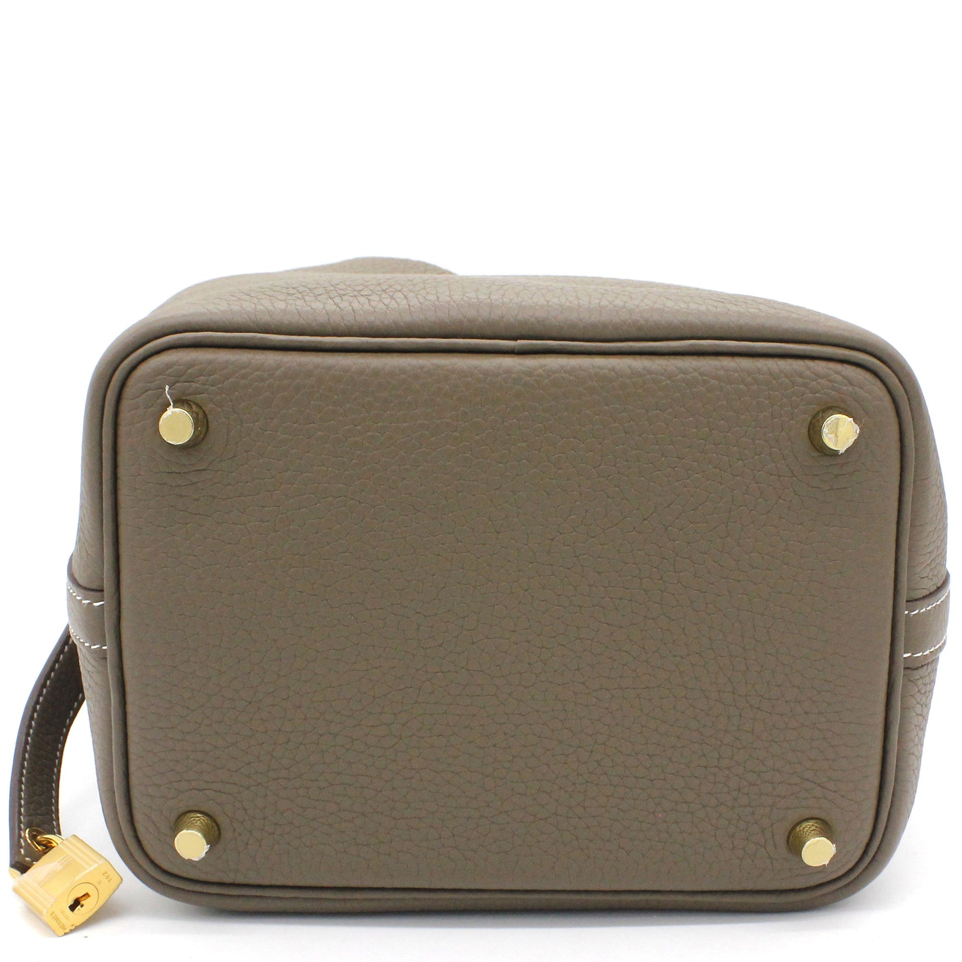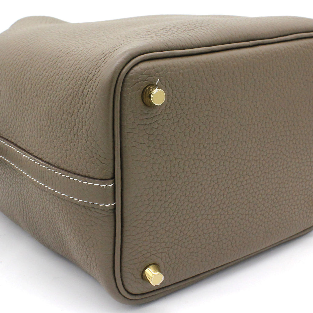 Exterior Material: Etoupe leather exterior with double handles and a strap with a padlock closure. Interior Material: Etoupe leather and suede lining with one main compartments. Accessories: FULL SET: Dust Bag; Photo Receipt; Box Date Stamp: D Production Year: 2019 Color Code: 18 Etoupe |