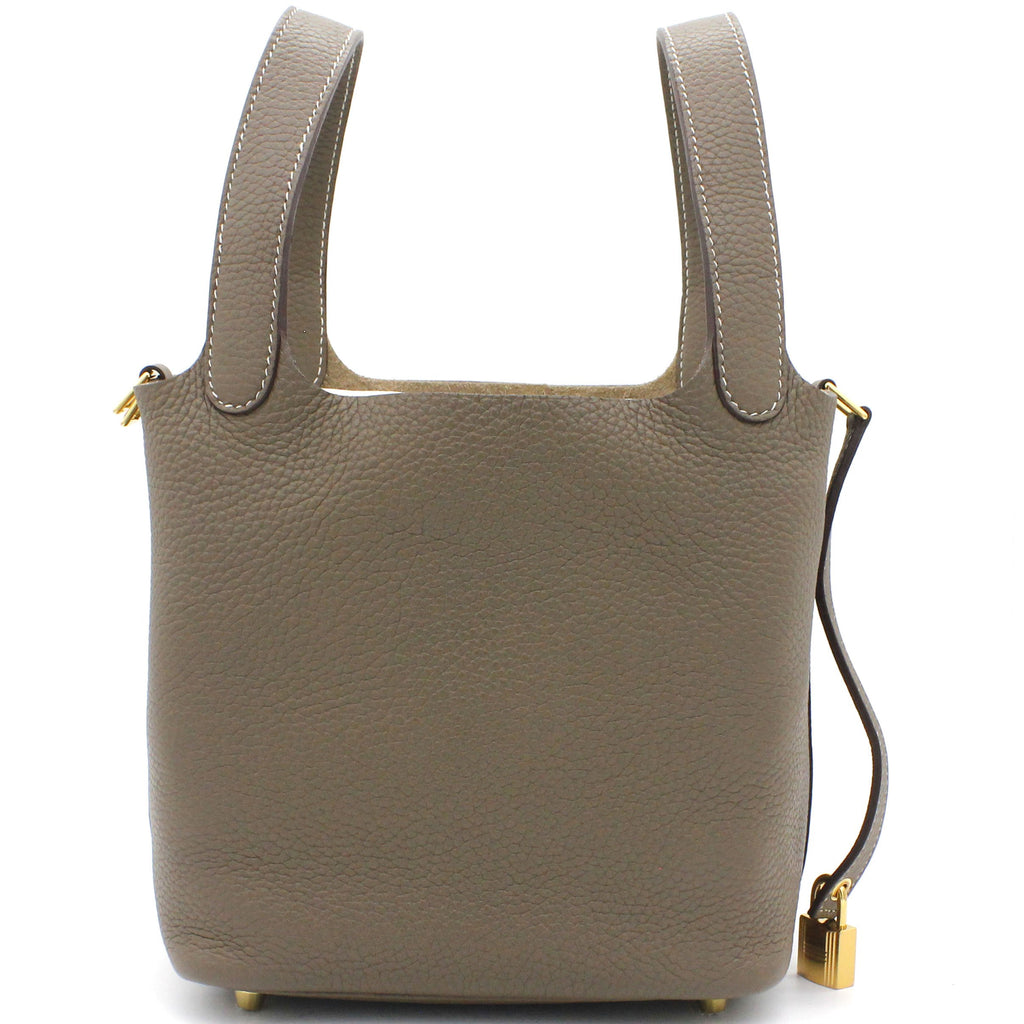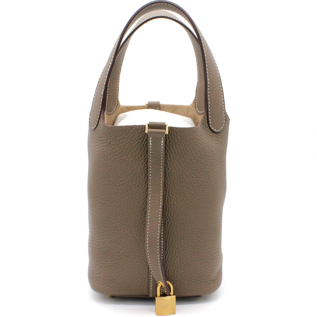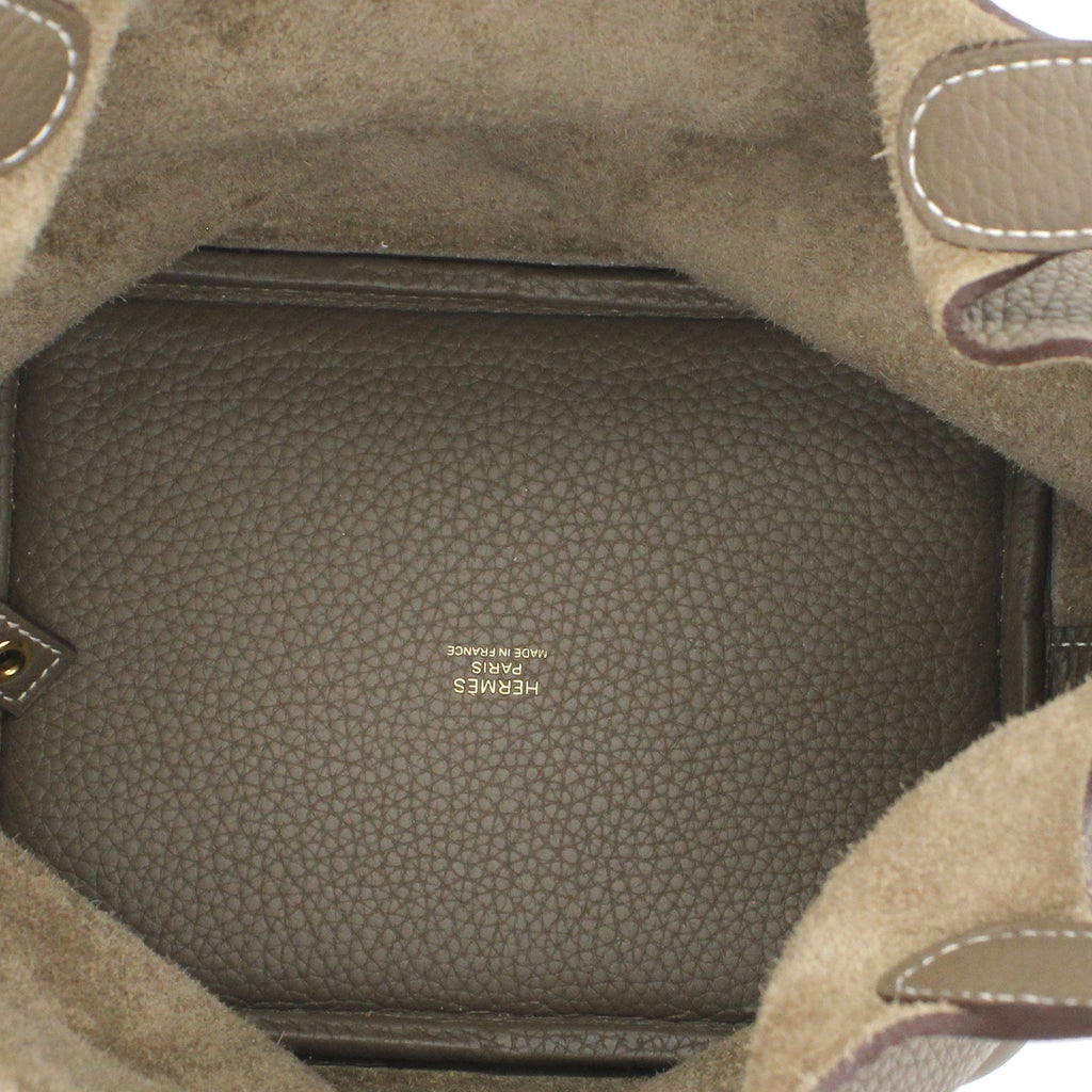 | Wonderfully crafted in France and made from Togo leather, this Picotin lock bag from Hermes is a creation for people who love a perfect blend of luxury and style. It comes in a classic shade of etoupe and it sits in a relaxed shape. It is styled with two handles, a strap with a gold-tone padlock, and a spacious leather interior. Armed with protective metal feet as a finishing touch, this bag is ideal for everyday usage. |