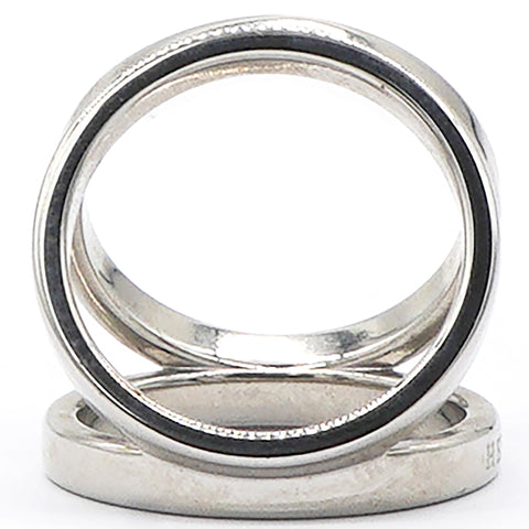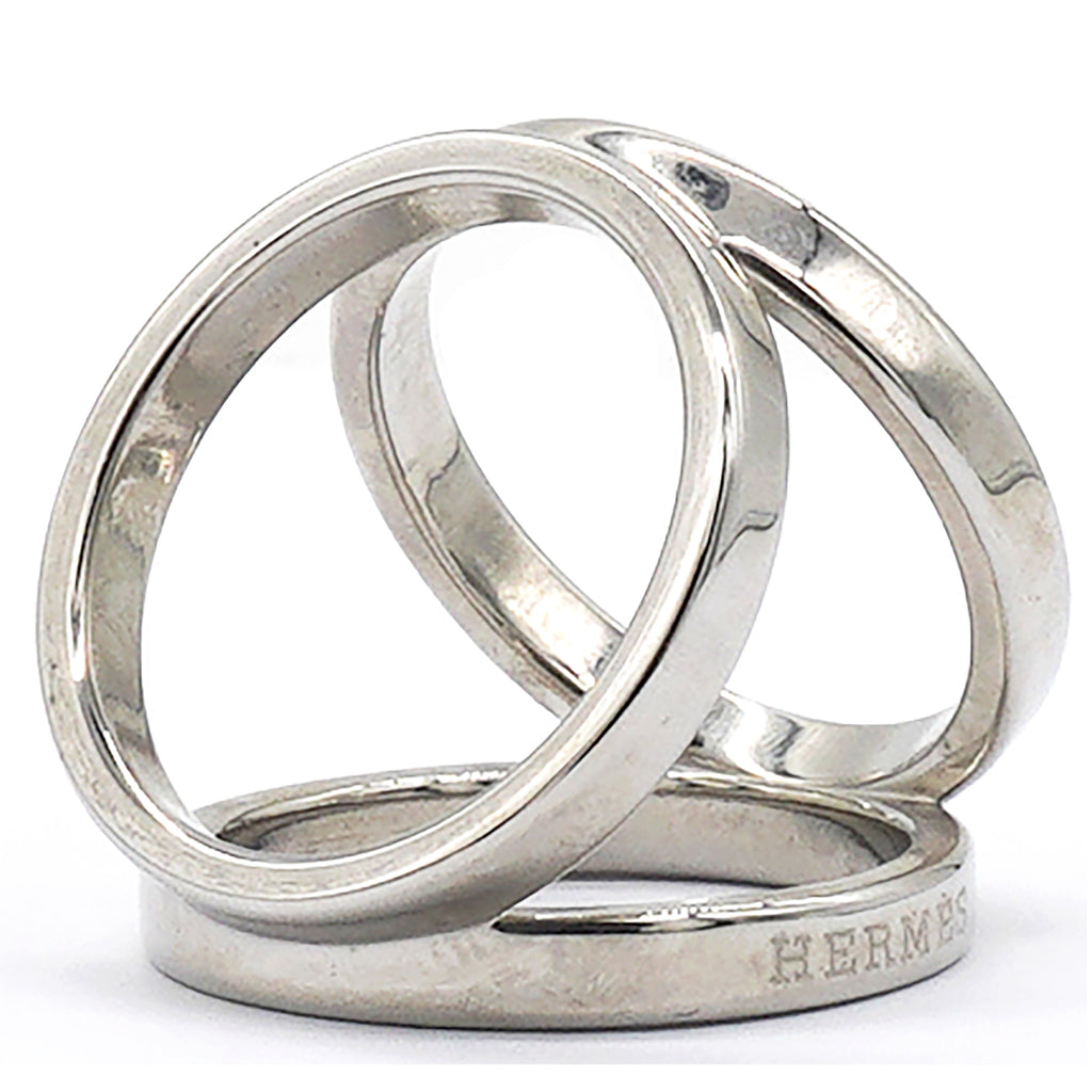 | This chic scarf ring is crafted of palladium metal and features three hoops for a decorative and stylish look to your Hermes scarf. Enjoy this ring for the practicality and the classical sophistication only from Hermes! |