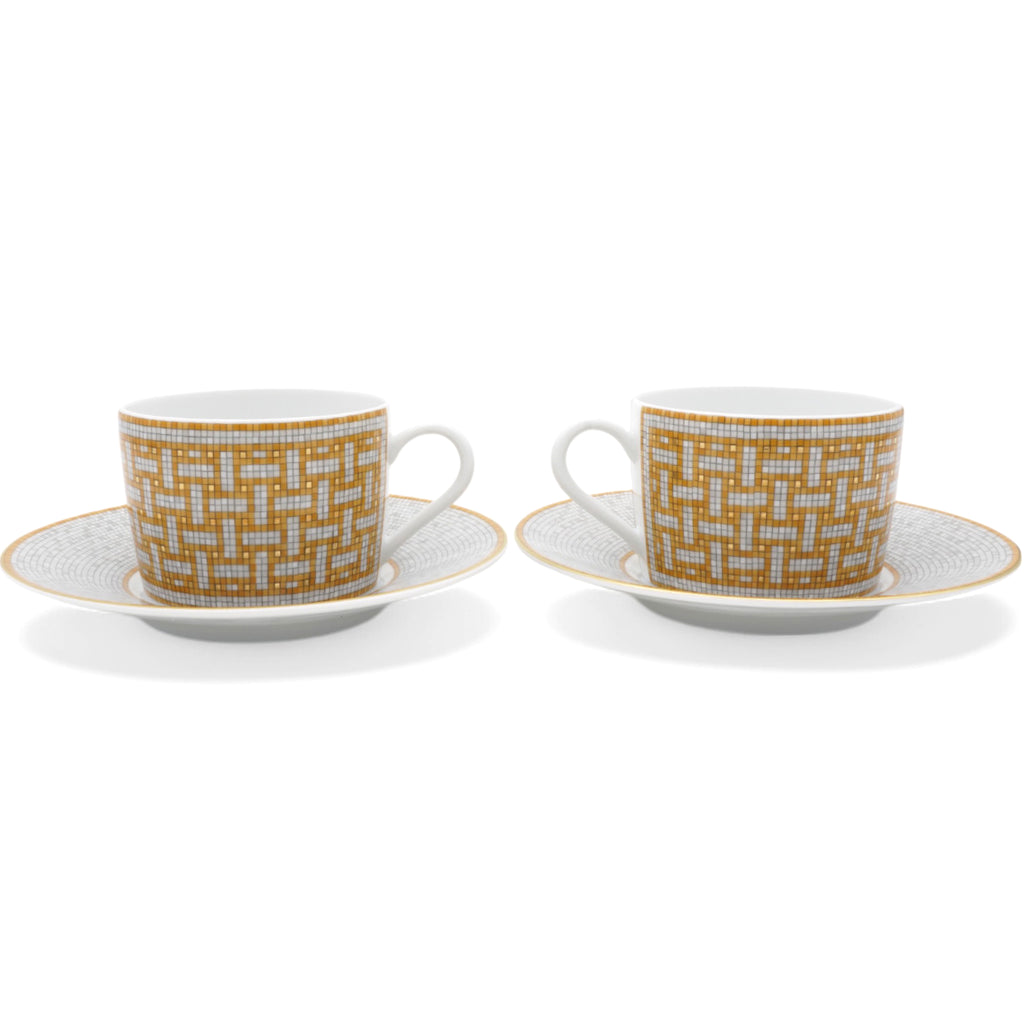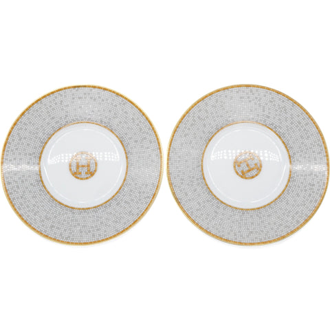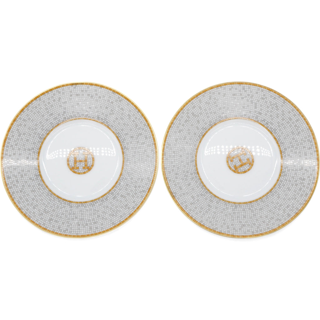 Decorative mosaics are screen-printed and applied by hand using 24-carat platinum tiles. Benoit Pierre Emery's design and geometric pattern in the Mosaique au 24 platinum collection reflects the original decor of 24 Faubourg Saint-Honore in Paris
