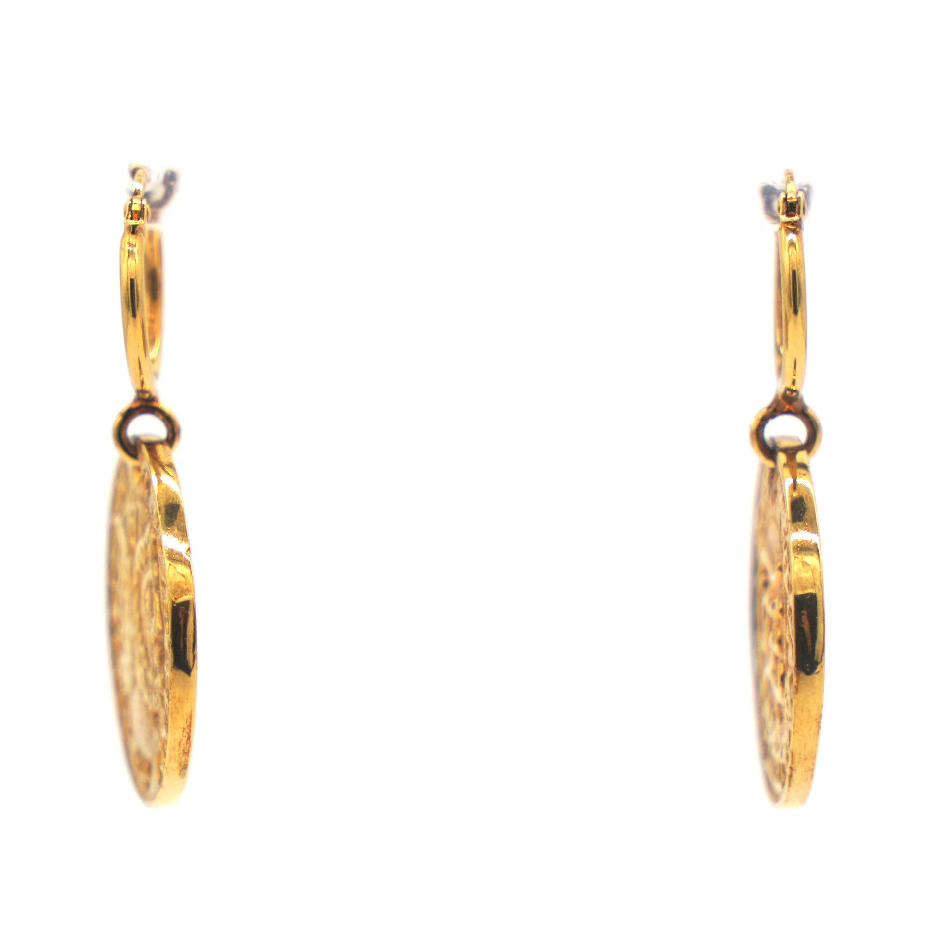 Elevate your ensemble with the opulent allure of Fendi's Gold-plated Coin Inspired Earrings. Crafted to perfection, these exquisite earrings exude timeless elegance and sophistication.