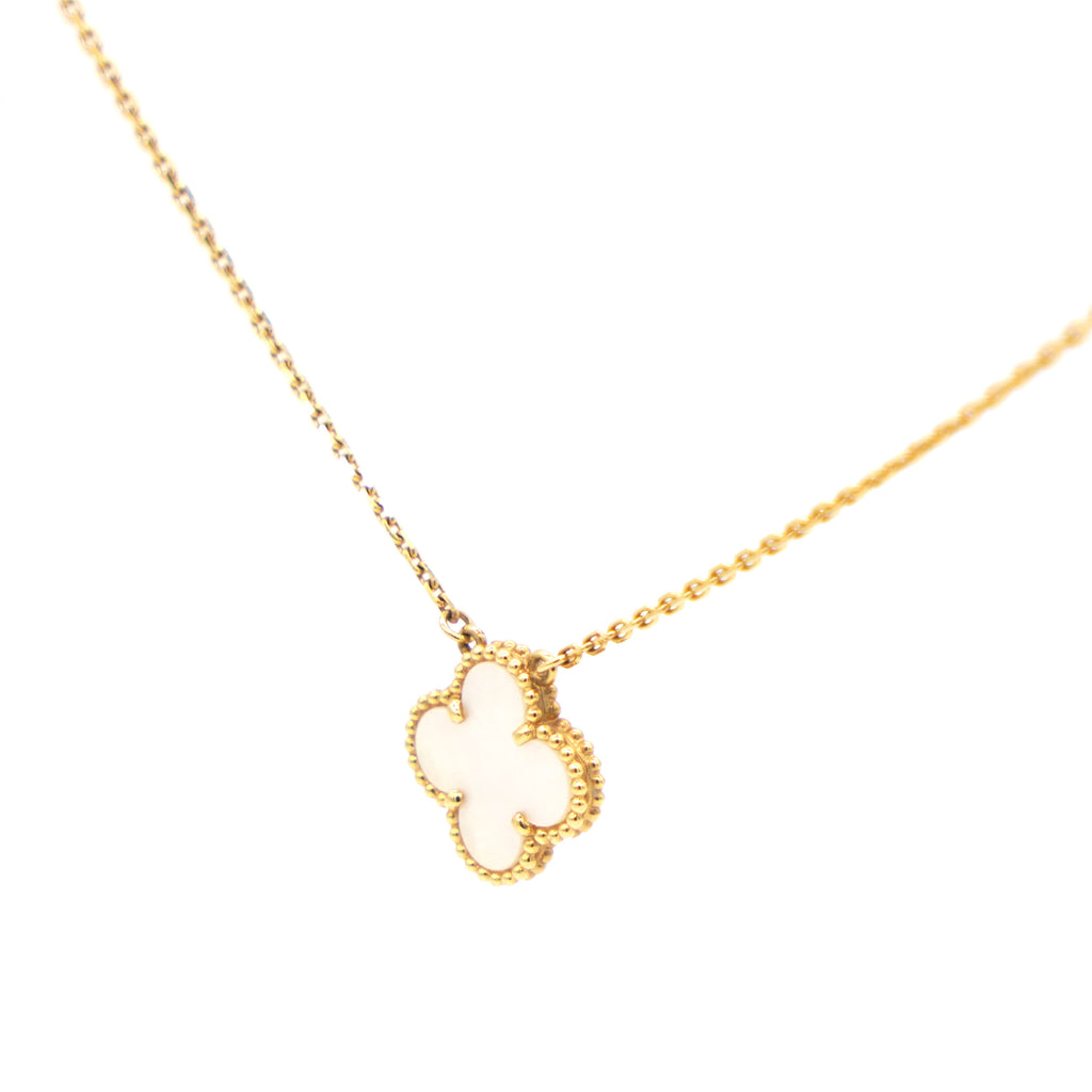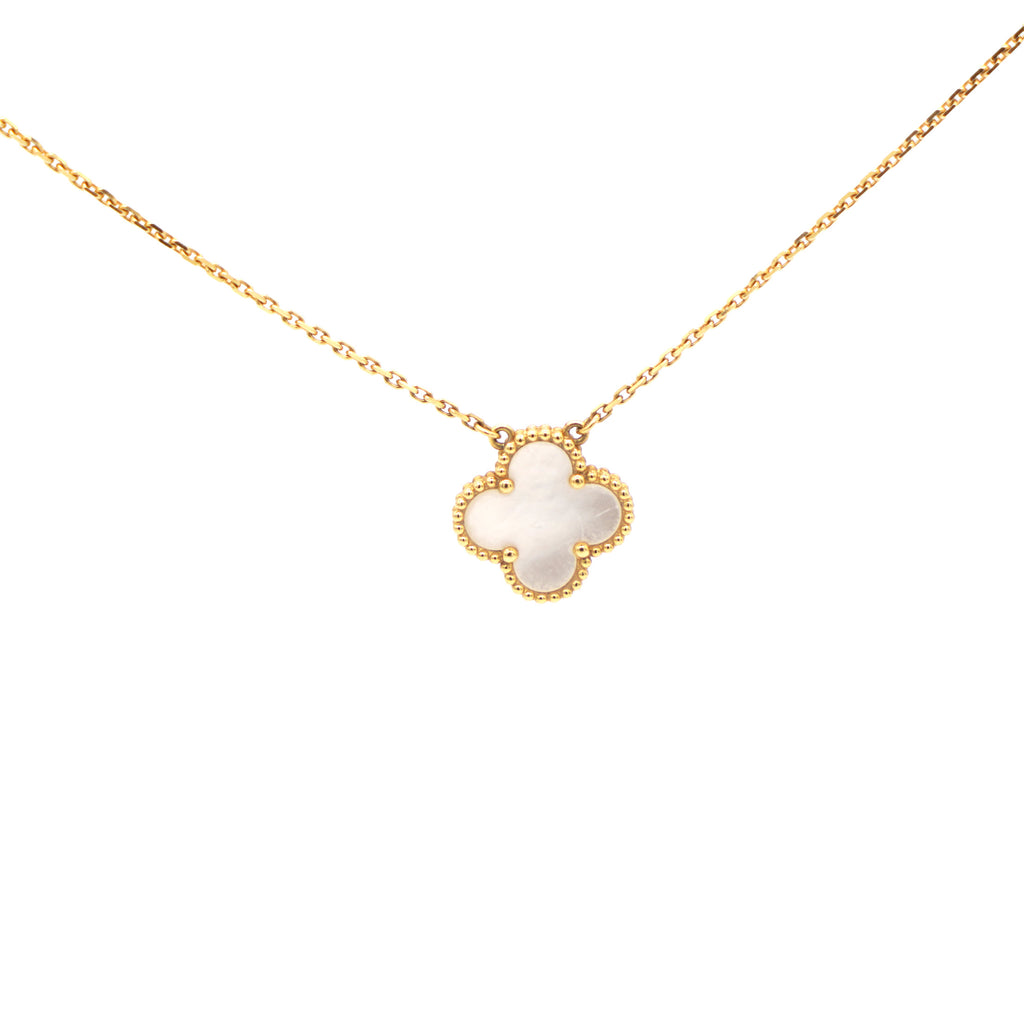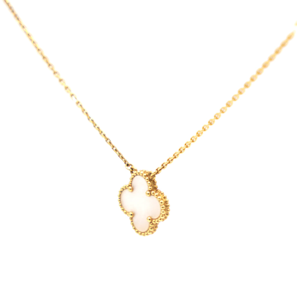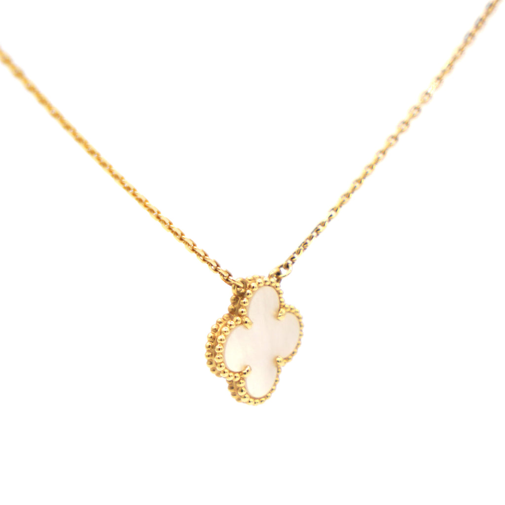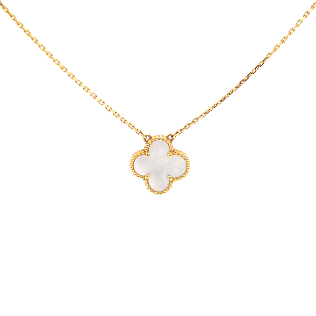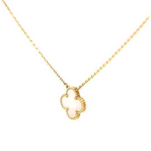 Vintage Mother of Pearl Alhambra Necklace Yellow Gold