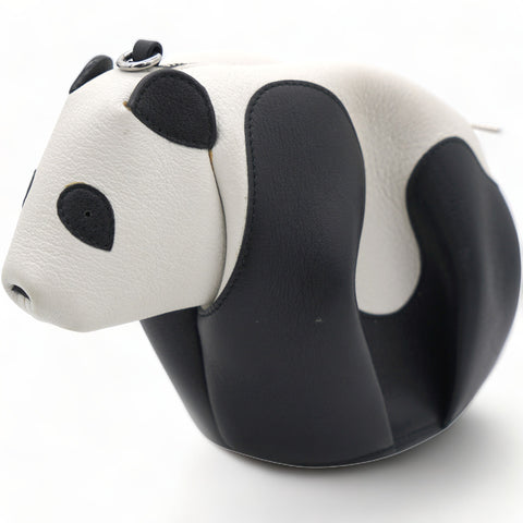 | Under the creative direction of Jonathan Anderson, the Spanish fashion house Loewe continues to bring a fresh and contemporary approach to every piece focusing on unconventional and intricate details. This grey and white calf leather panda cross-body bag features a cross body strap, a gold-tone top zip fastening and a panda shape. |