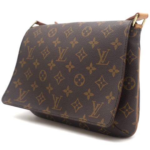 | This chic shoulder bag is finely crafted of Louis Vuitton monogram on coated canvas. The bag features a vachetta cowhide leather shoulder strap with polished brass hardware and a frontal flap. This flap opens to a saffron alcantara microfiber interior with a patch pocket. |