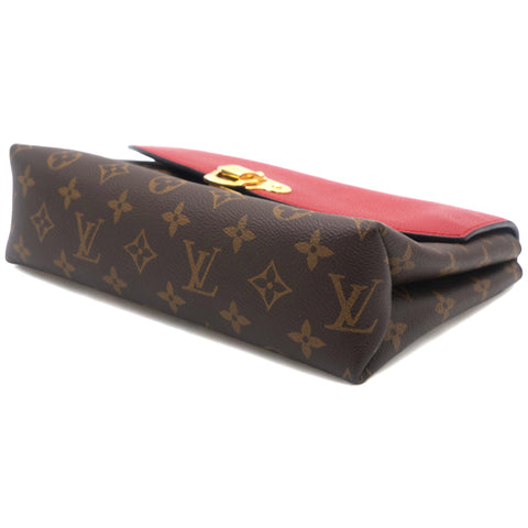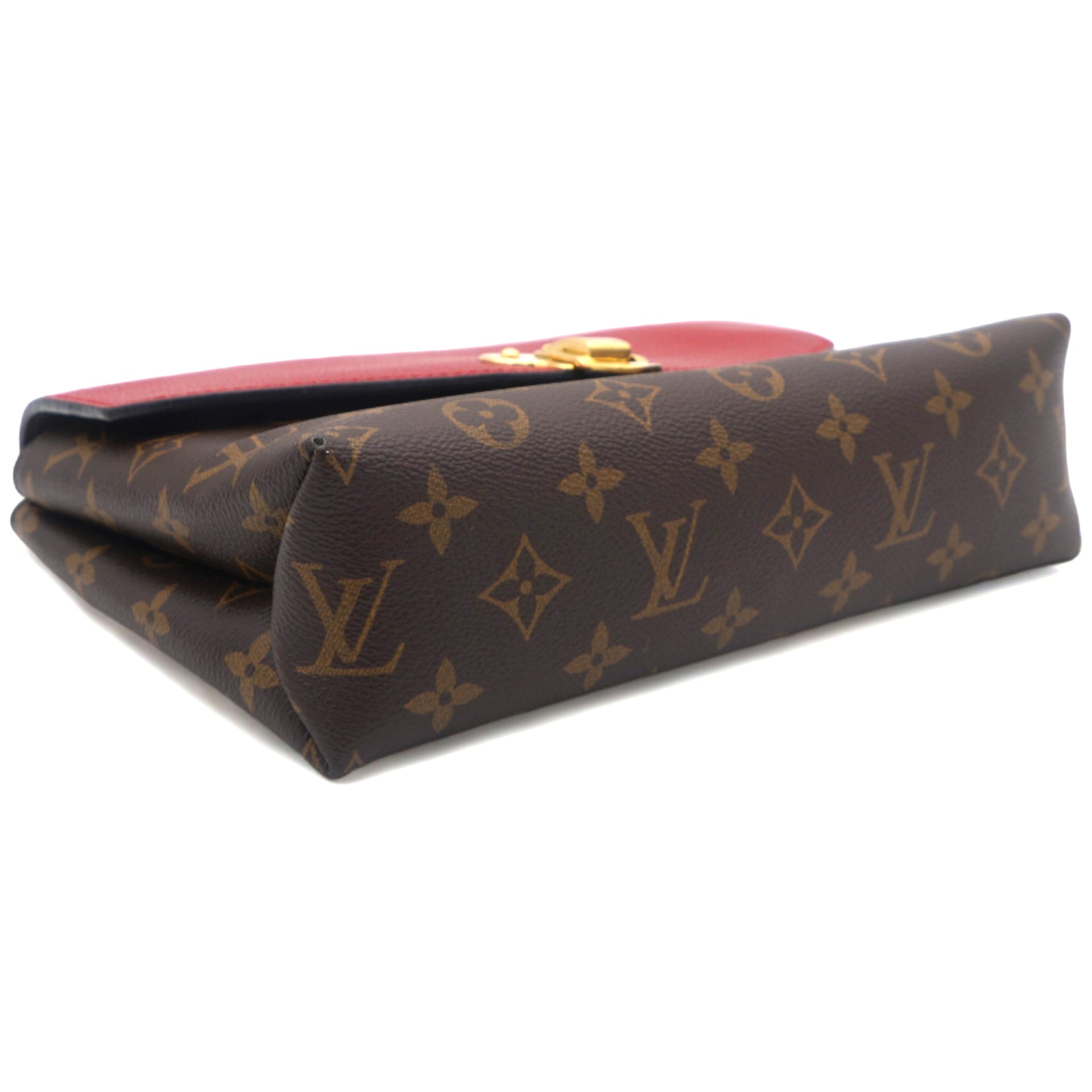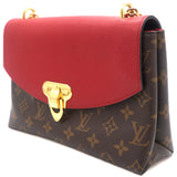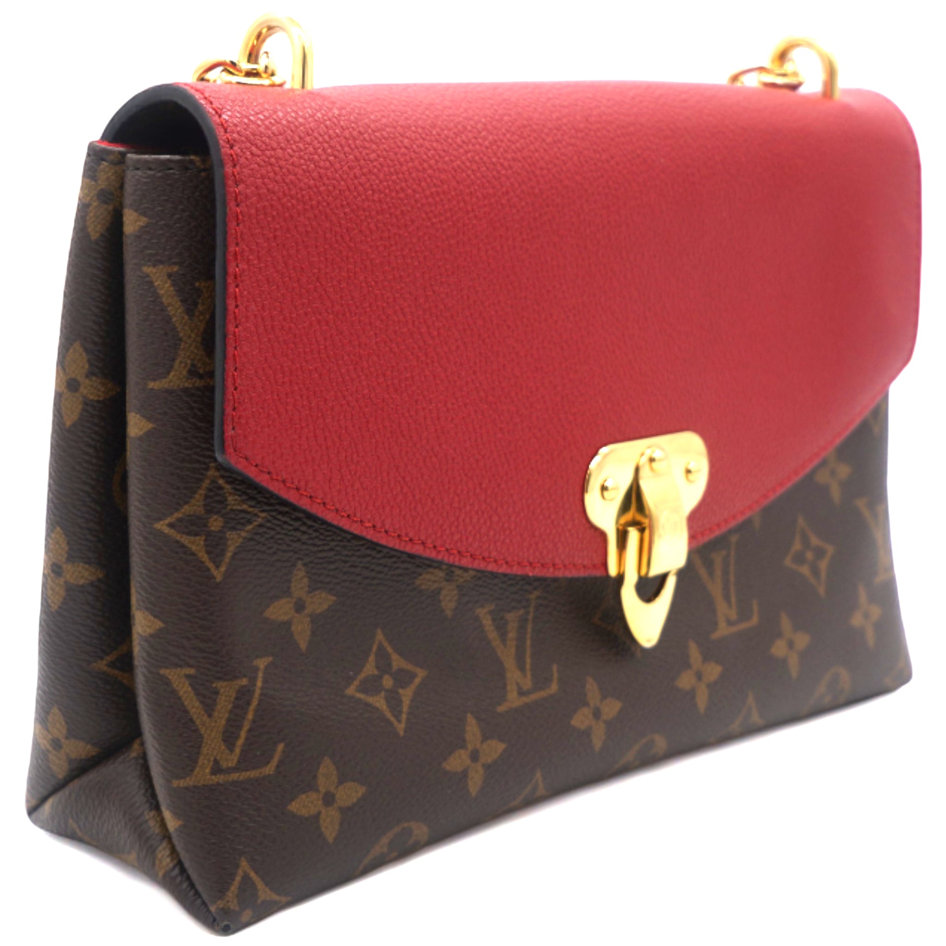 | This chic handbag is crafted of Louis Vuitton monogram on toile canvas combined with a red calfskin leather front flap. The cross-body bag features a golden clasp on the flap closure and chain link shoulder strap with a black leather shoulder pad. The flap opens to a red microfiber interior with a zipper compartment and a patch pocket. |