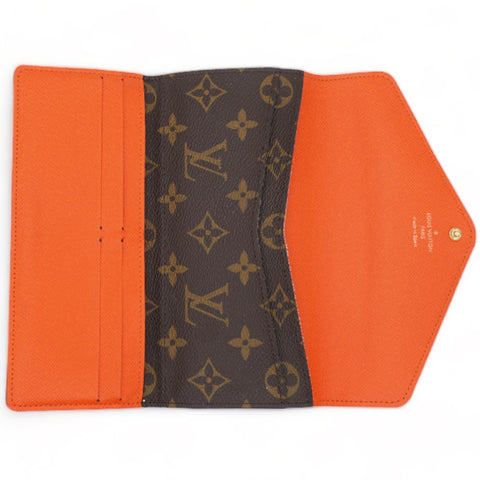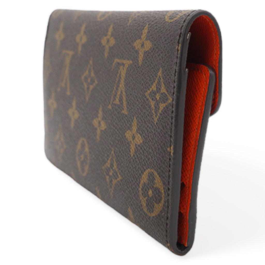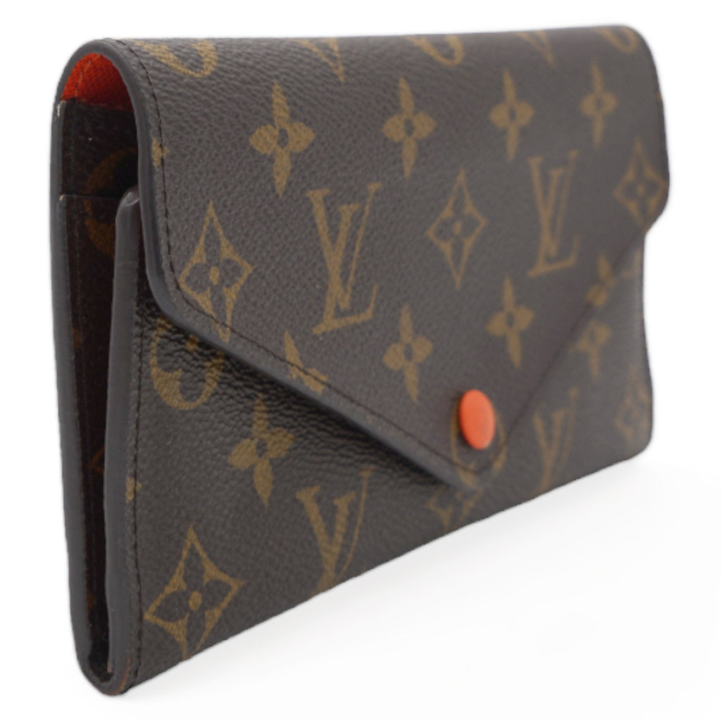 This is an authentic LOUIS VUITTON Monogram Josephine Wallet in Fuchsia. This stylish wallet is crafted of monogram coated canvas. The flap opens to a dark pink cross grain leather interior with flat pockets, card slots, and a removable zippered coin compartment.
