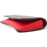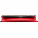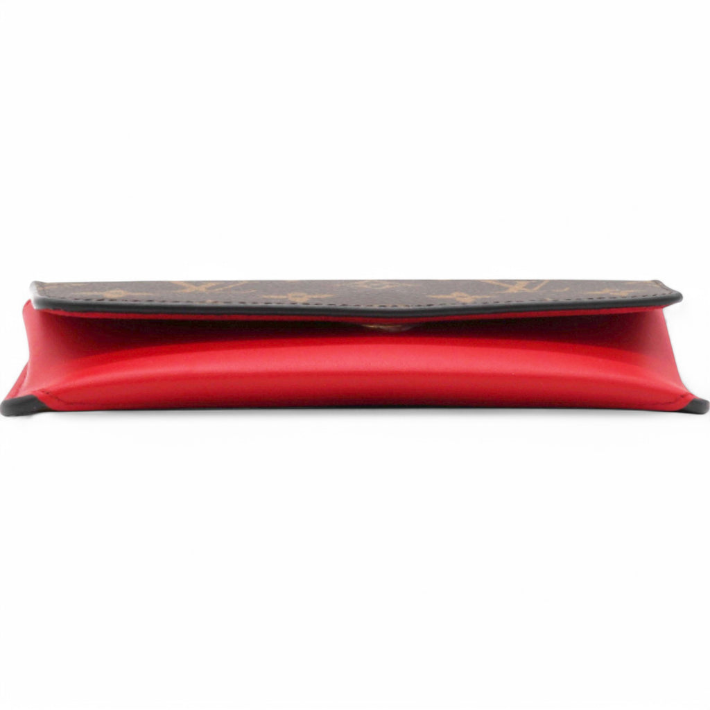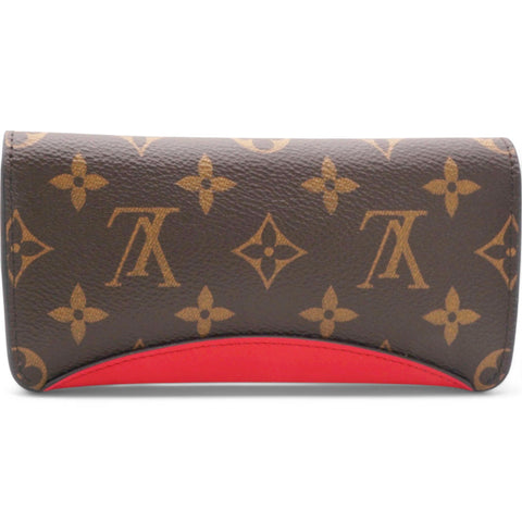 | This stylish case is crafted of Louis Vuitton monogram-coated canvas and a red leather base. The case unsnaps to a red microfiber interior with room for glasses. |