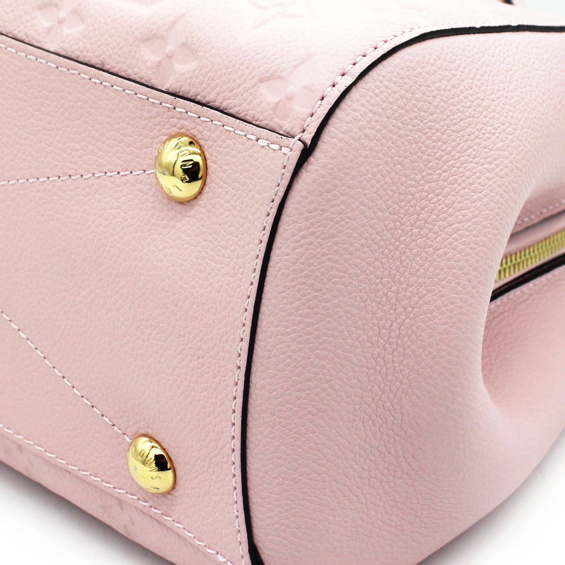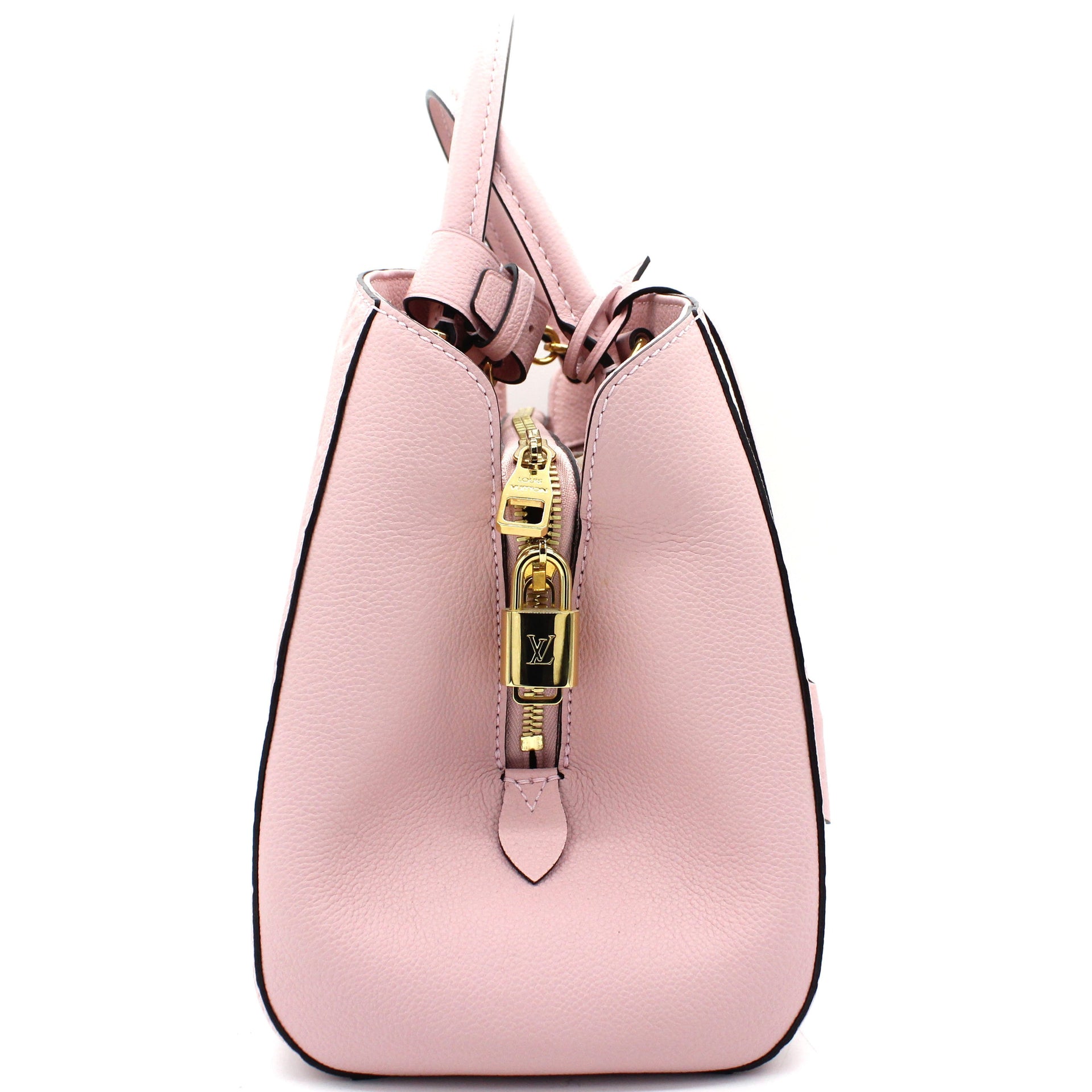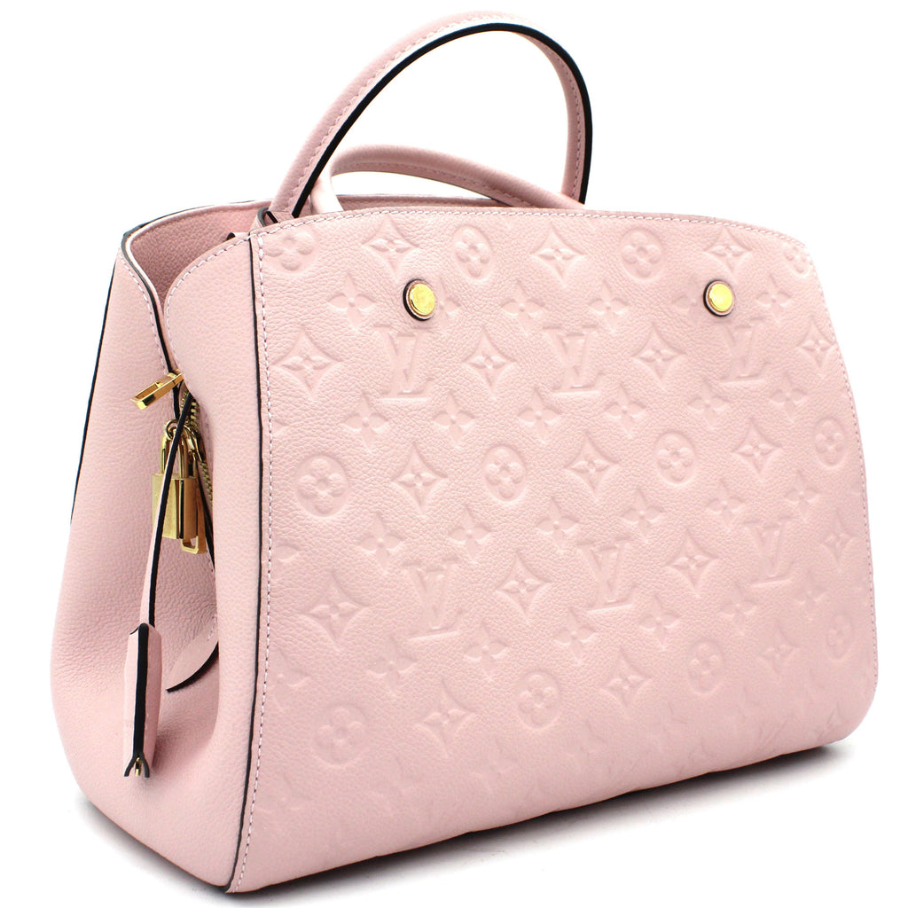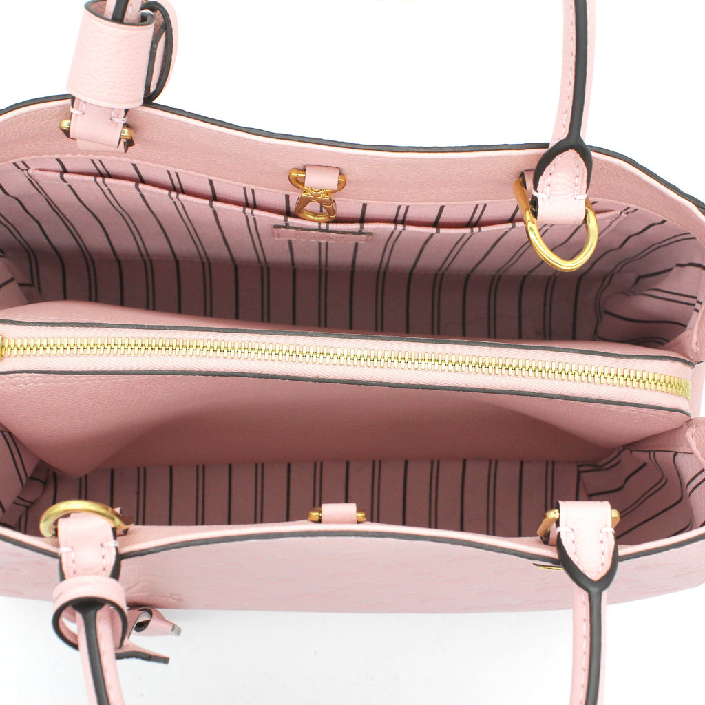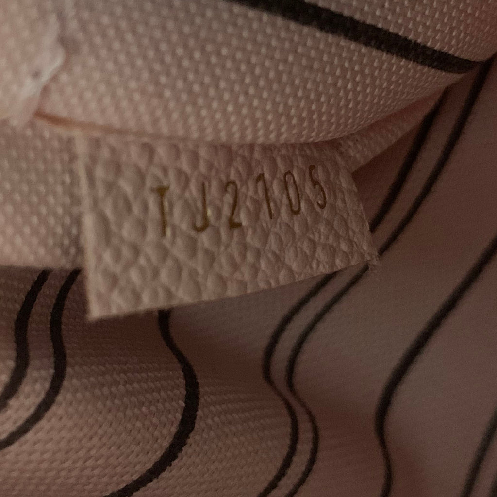Exterior Material: Pink Monogram Empreinte leather exterior with double rolled top handles and a removable shoulder strap. Interior Material: Pink fabric lining with three main compartment: one centre zipped pocket, double smartphone pocket and one flat pocket. Accessories: Dust Bag Serial Number: TJ2105 Bought Year: 2015 |
