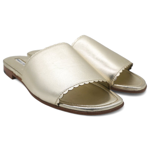 Manolo Blahnik Arcara Metallic Flat Slide Sandals, Gold 36