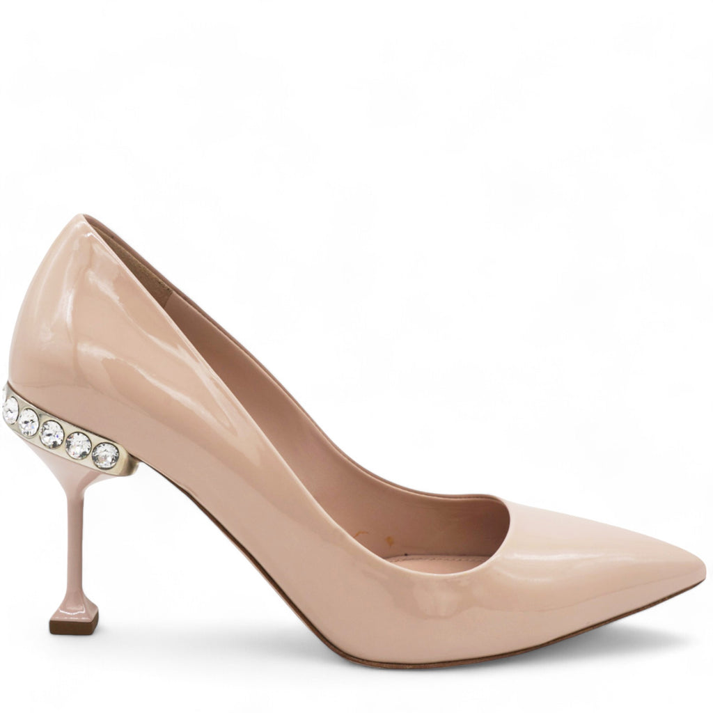 | Upgrade your shoe collection with MIU MIU Strass Heel Patent Leather Pumps in Size 36. With its stylish Strass heel and sleek patent leather design, these pumps are sure to elevate any outfit. Trust in MIU MIU's renowned expertise and quality for a comfortable and fashionable fit. |