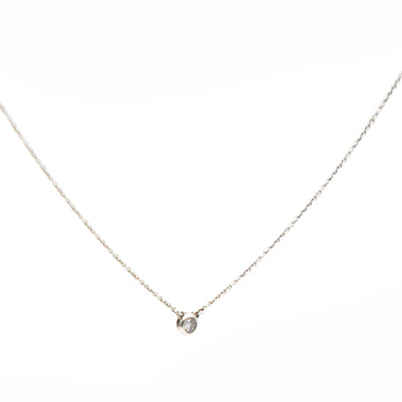 Tiffany & Co Diamonds By The Yard necklace in silver and diamond, composed of one delicate chain in pink gold, holding a beautiful diamond brilliant cut weighting about 0.10 carat in its center.