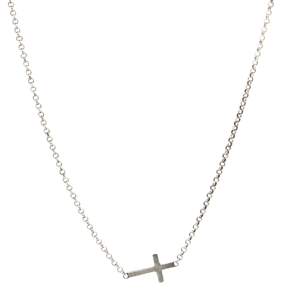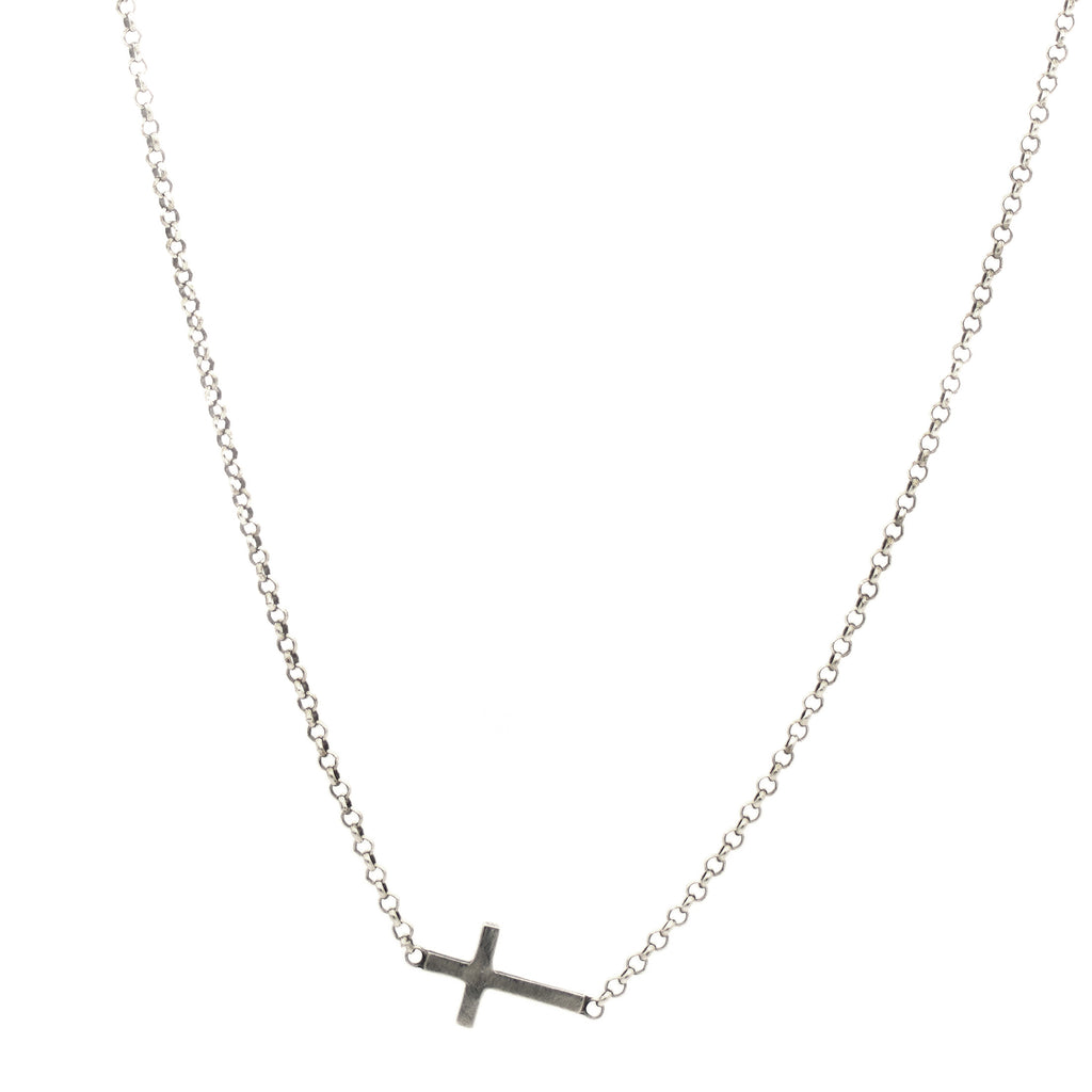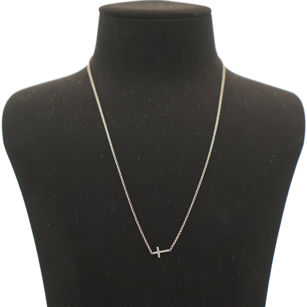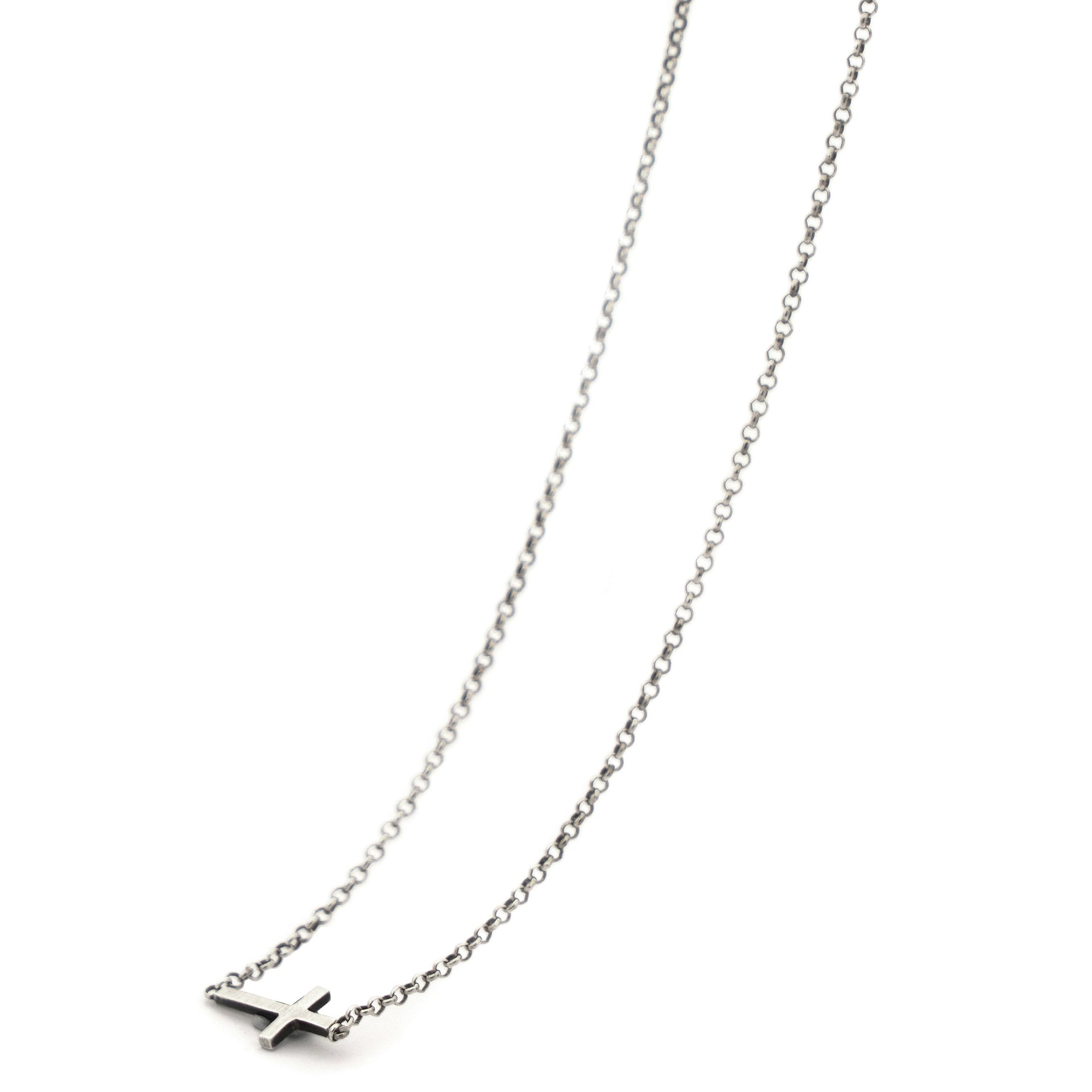 | This delicate necklace crafted from signature house sterling silver with inverted cross. It’s great for daily wear. House label engraved on the clasp closure. |