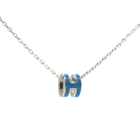 | This is an authentic HERMES Lacquered Gold Pop H Pendant Necklace in Blue. This is a simple and very chic necklace from Hermes. It features a ring shape that is an elongated lacquered White “H", which hangs on a short, thin gold band. |