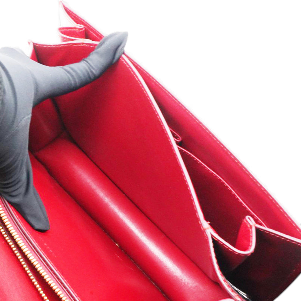 This chic shoulder bag is crafted of box calfskin leather in red. The bag features an adjustable shoulder strap and a front flap with a gold switch-lock. The flap opens to a partitioned leather interior with zipper and patch pockets.